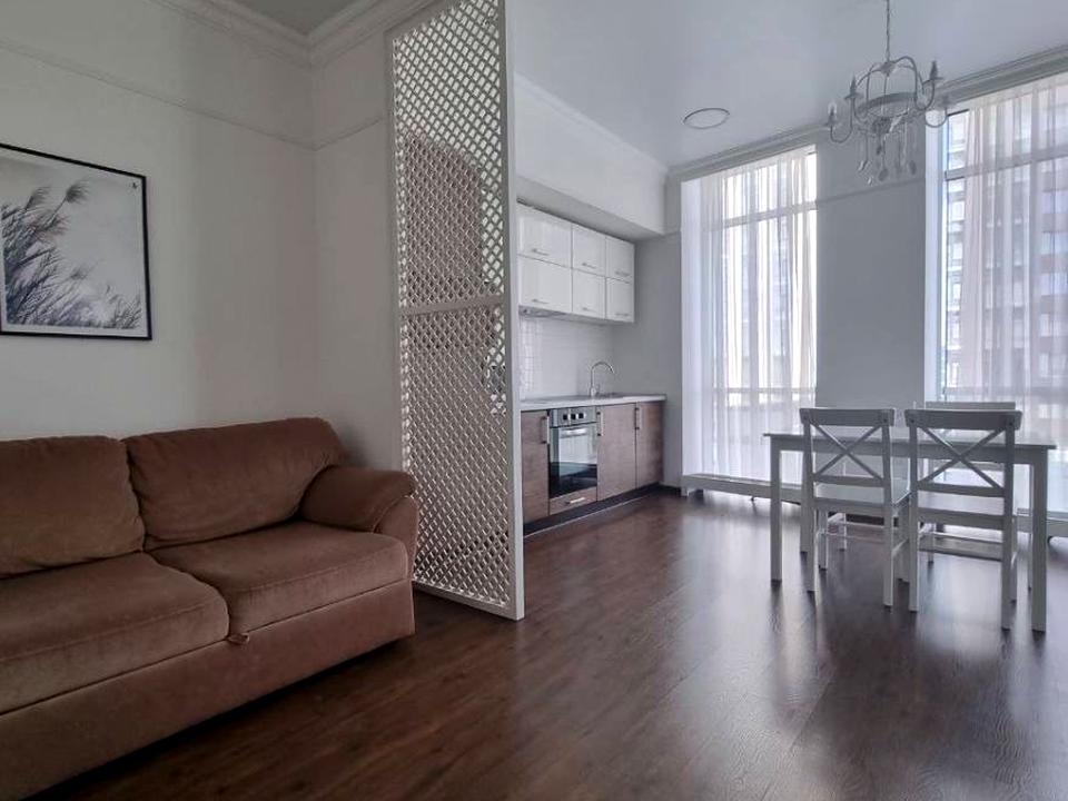 В квартире 1 комната, Технологія будівництва - Монолітно-каркасна, Тип будинку - Спец. проект. Вид из окон на реку. Планировка комнат Раздельная. Есть горячая вода. Есть отопление. Совместный санузел. Есть сантехника. В квартире есть Телевизор, Шкаф, Кровать, Подогрев полов, Кондиционер, Стиральная машина, Сушильная машина, Холодильник, Микроволновка, Посудомойная машина, Посуда, Счетчики. Дом построен в 2017 году. Общее состояние квартиры - С ремонтом. Рядом есть школа, детсад, остановки, парк, речка/озеро, развлекательные заведения, супермаркет. Интернет оптоволоконный. Работает без света - вода, отопление, интернет, лифт. Комиссия за услуги 100 %