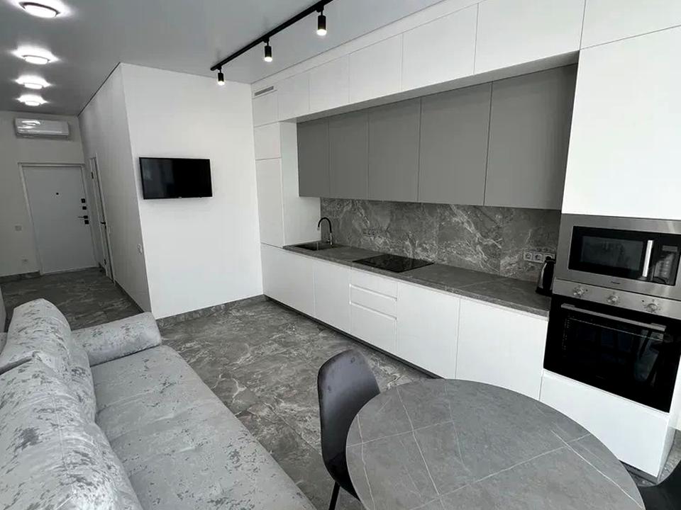 В квартире 2 комнаты, Технологія будівництва - Монолітно-каркасна. Планировка комнат Студия. Кухонная плита электрическая. Горячая вода - электрический бойлер. Отопление автономное. В квартире есть Телевизор, Подогрев полов, Кондиционер, Стиральная машина, Душевая кабина, Ванна, Холодильник, Микроволновка, Посудомойная машина. Дом построен в 2021 году. Общее состояние квартиры - С ремонтом. Количество санузлов: 1. Интернет беспроводной. Работает без света - вода. Комиссия за услуги 75 %