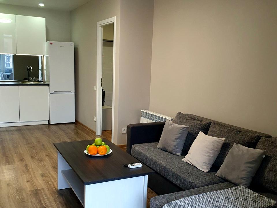 - 55 метров, 10/12 этаж, кухня-студия + спальня.