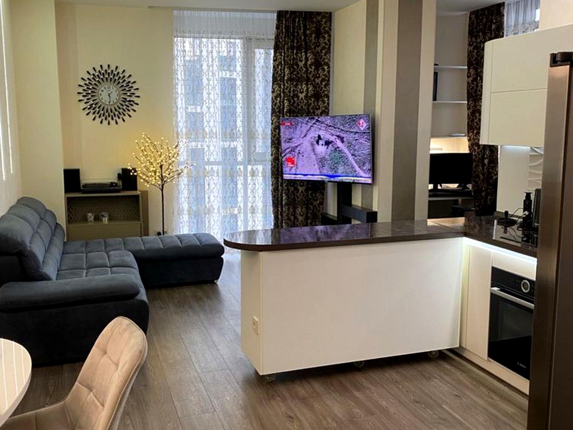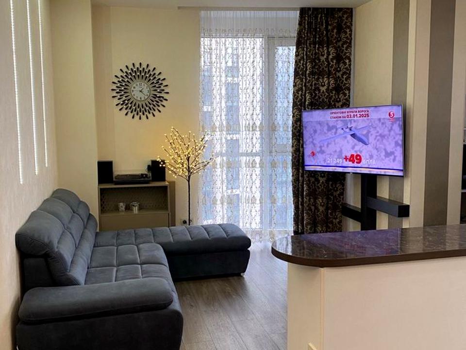 В квартире 2 комнаты, высота потолков 3 метра, Технологія будівництва - Монолітно-каркасна, Тип будинку - Спец. проект. Кухонная плита электрическая. В квартире есть Телевизор, Кондиционер, Стиральная машина, Душевая кабина, Холодильник, Микроволновка, Посудомойная машина. Дом построен в 2016 году. Общее состояние квартиры - С ремонтом. Горячая вода - электрический бойлер. Количество санузлов: 2. Интернет беспроводной. Работает без света - вода, отопление, интернет, лифт, резервное питание квартиры (акумуляторы). Тип кухни - кухня-студия. Количество спален: 1. Комиссия за услуги 75 %