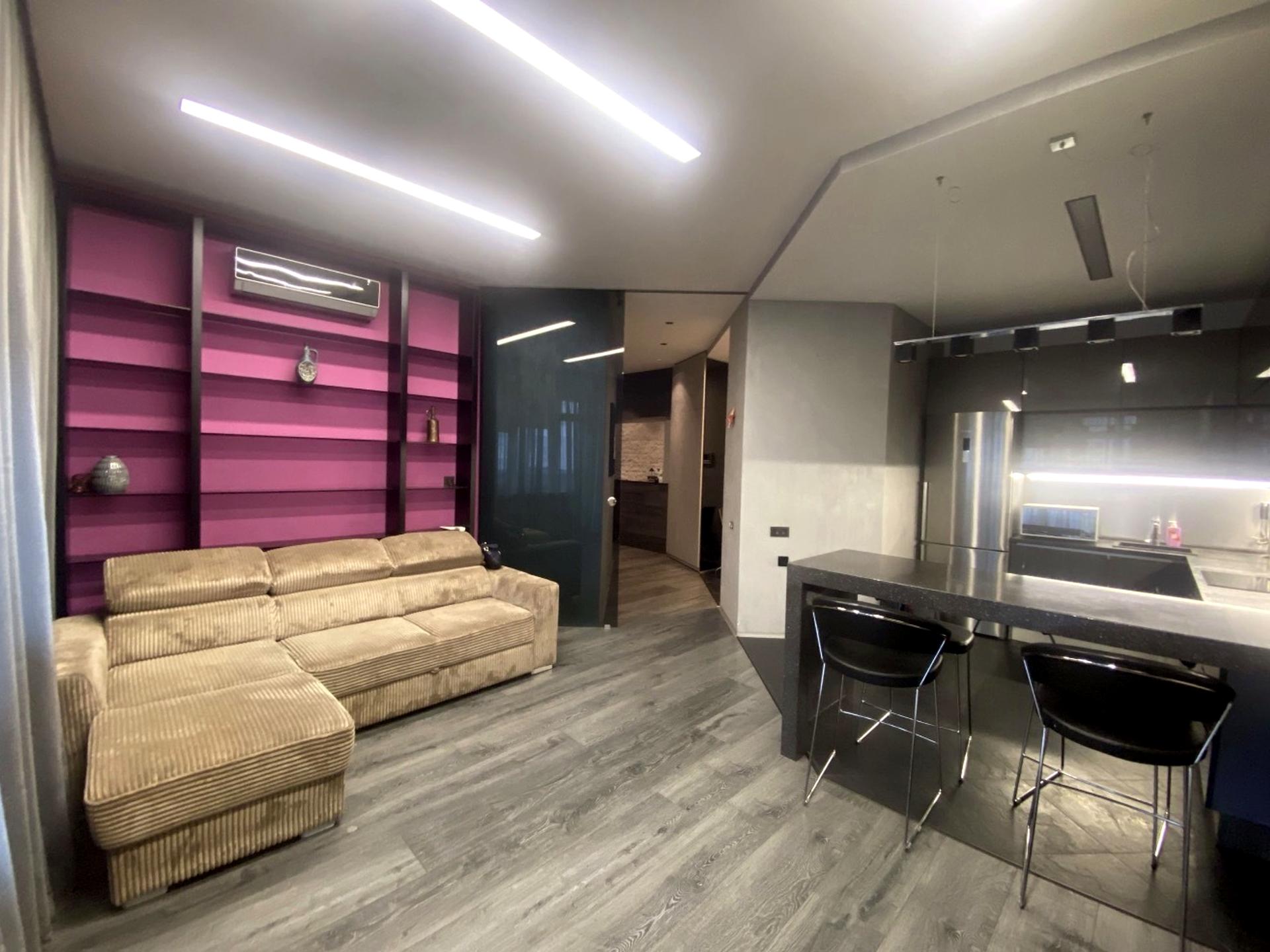 В квартире есть все необходимое для жизни: 2 раскладных дивана и двуспальная кровать с ортопедическим матрасом, мебель, вся мелкая и крупная бытовая техника: холодильник, микроволновка, бойлер, стиральная машинка, посудомойка, кондиционеры в каждой комнате, духовой шкаф, вытяжка, чайник, пылесос, утюг, телевизор, проведён интернет и тв.