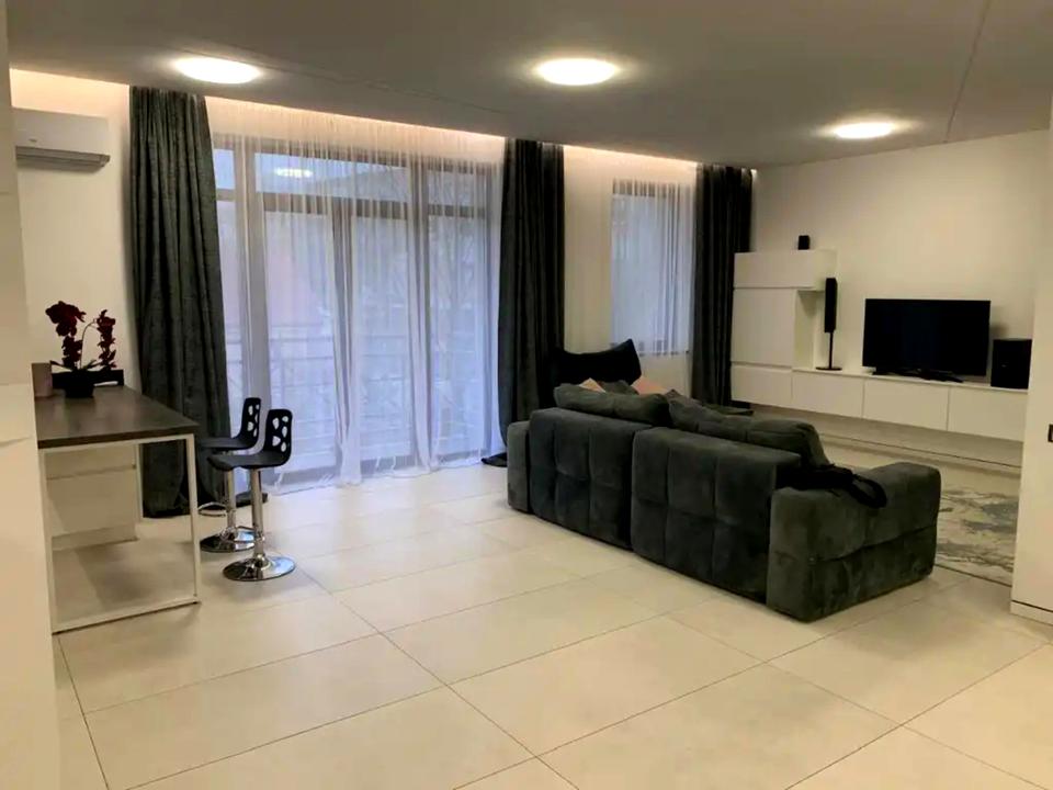 Велика кухня вітальня з зоною для відпочинку та роботи + дві спальні в кожній двоспальне ліжком + санвузол з джакузі та душовою кабіною. + два балкони.