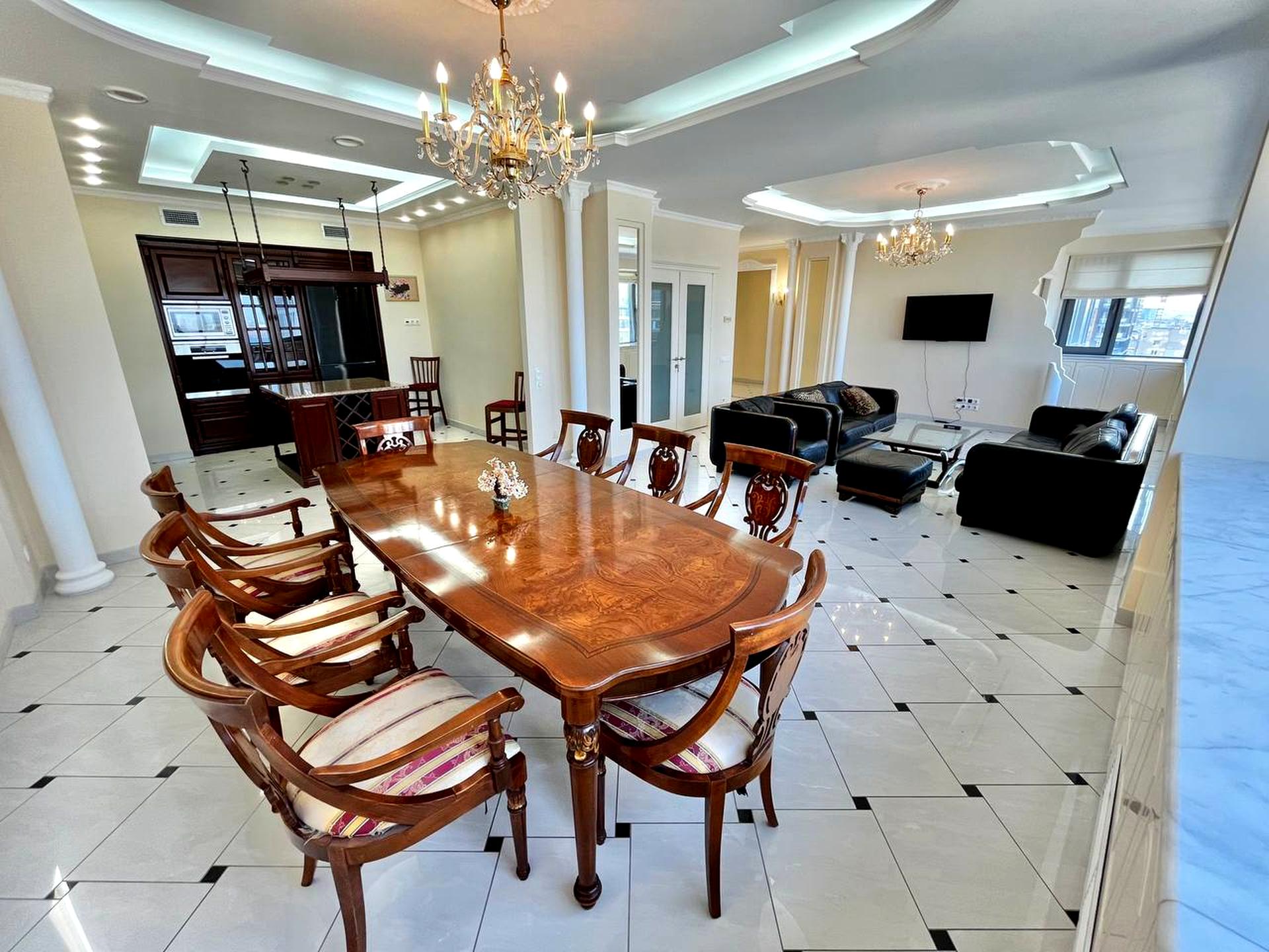 В квартире 4 комнаты, Технологія будівництва - Монолітно-каркасна, Тип будинку - Спец. проект. Общее состояние квартиры - С ремонтом. Количество санузлов: 3 и больше. Работает без света - вода, отопление, интернет, лифт, резервное питание квартиры (акумуляторы). Тип кухни - кухня-студия. Количество спален: 3. Комиссия за услуги 75 %