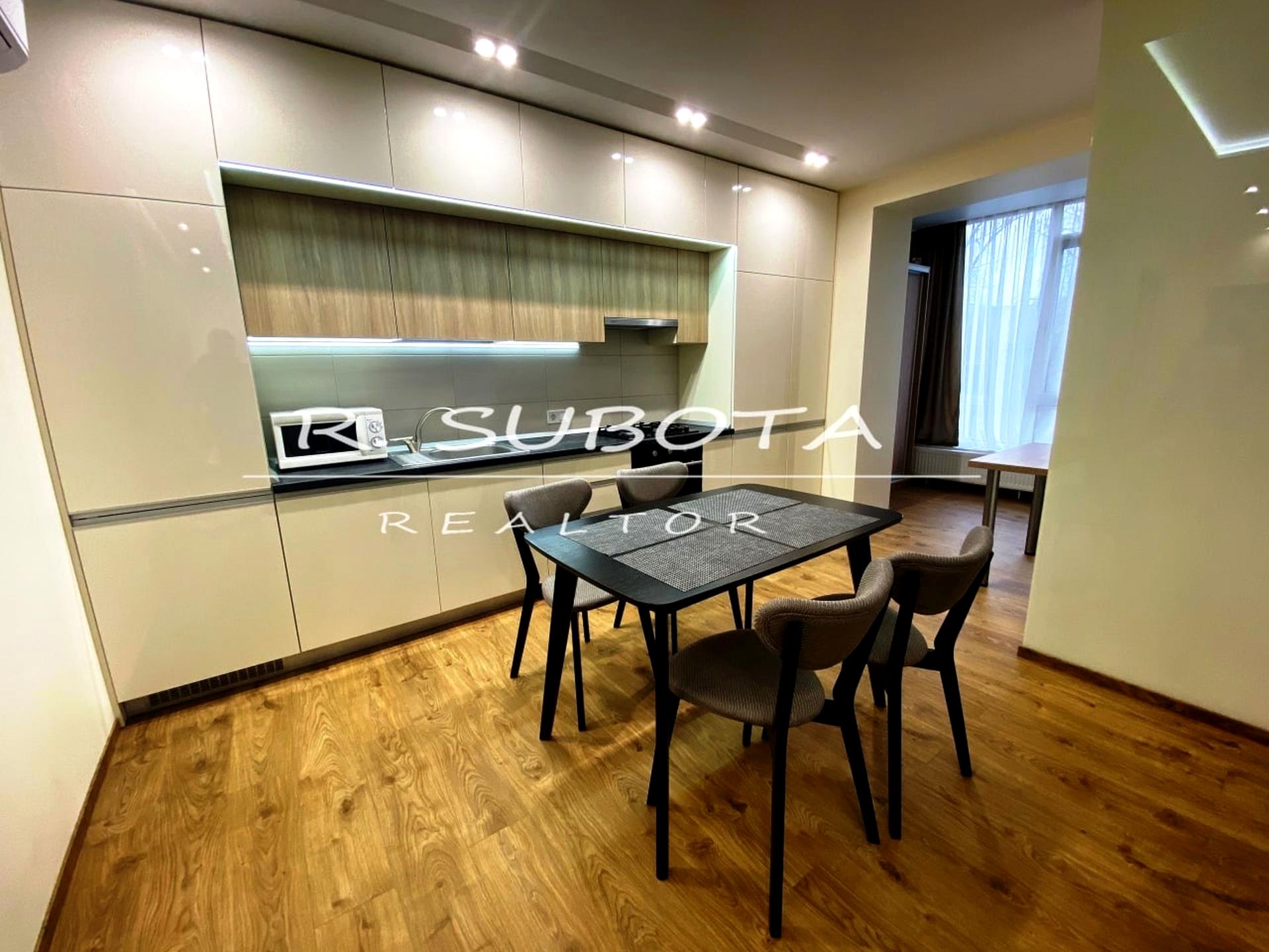 В квартире 2 комнаты, высота потолков 3 метра, Технологія будівництва - Монолітно-каркасна, Тип будинку - Спец. проект. Есть газ, кухонная плита электрическая. Балкона нет. В квартире есть Телевизор, Кондиционер, Стиральная машина, Ванна, Холодильник, Микроволновка. Дом построен в 2017 году. Общее состояние квартиры - С ремонтом. Безбарьерность: вход в дом на уровне земли. Горячая вода - газовый котел. Количество санузлов: 1. Интернет оптоволоконный. Работает без света - вода, отопление. Тип кухни - кухня-студия. Количество спален: 1. Есть подземный паркинг, доступный как укрытие. Инфраструктура территории: детская площадка. Комиссия за услуги 100 %