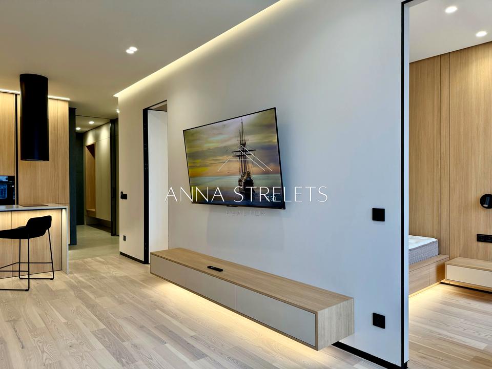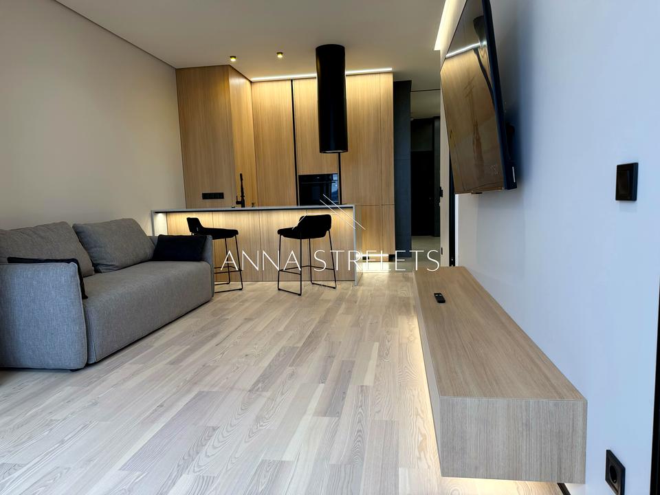 В квартире 2 комнаты, высота потолков 3 метра, Технологія будівництва - Монолітно-каркасна, Тип будинку - Спец. проект. Газа нет, кухонная плита электрическая. Балкона нет. В квартире есть Телевизор, Подогрев полов, Кондиционер, Стиральная машина, Ванна, Холодильник, Микроволновка, Посудомойная машина. Дом построен в 2018 году. Общее состояние квартиры - С ремонтом. Горячая вода - электрический бойлер. Количество санузлов: 1. Интернет оптоволоконный. Работает без света - вода, интернет, лифт. Тип кухни - кухня-студия. Количество спален: 1. Есть подземный паркинг, доступный как укрытие. Комиссия за услуги 75 %