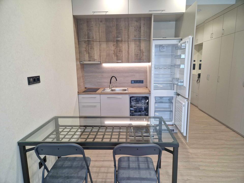 В квартире 1 комната, Технологія будівництва - Монолітно-каркасна, Тип будинку - Спец. проект. Кухонная плита электрическая. В квартире есть Телевизор, Кондиционер, Стиральная машина, Душевая кабина, Холодильник, Посудомойная машина. Дом построен в 2024 году. Общее состояние квартиры - С ремонтом. Горячая вода - электрический бойлер. Количество санузлов: 1. Интернет беспроводной. Работает без света - вода, отопление, лифт. Тип кухни - кухня-студия. Есть подземный паркинг, доступный как укрытие. Комиссия за услуги 75 %