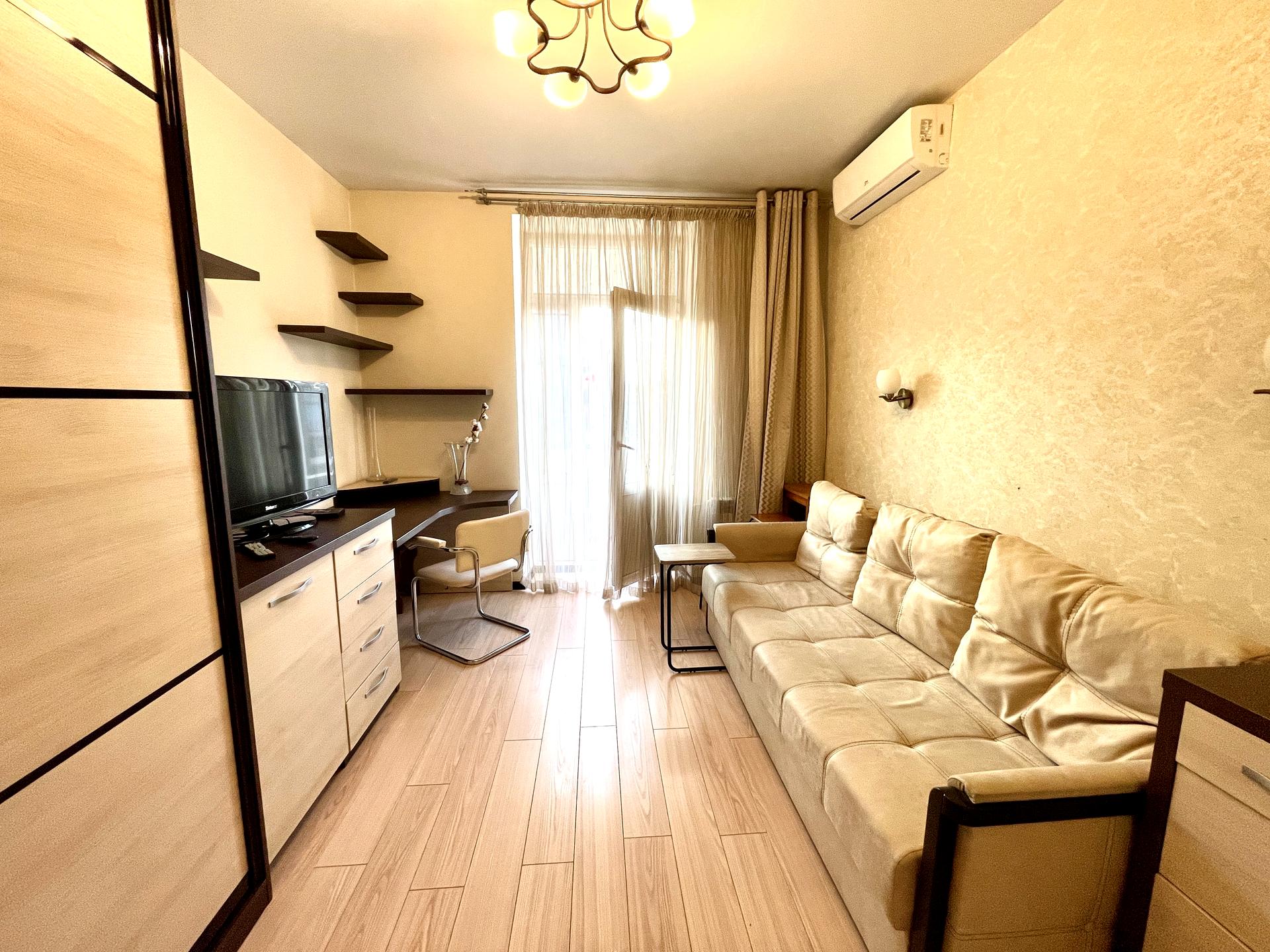 В квартире 2 комнаты, высота потолков 3 метра, Технологія будівництва - Цегляна, Тип будинку - Сталінка. Есть газ, кухонная плита газовая. Есть балкон. В квартире есть Телевизор, Кондиционер, Стиральная машина, Ванна, Холодильник. Дом построен в 1951 году. Общее состояние квартиры - С ремонтом. Горячая вода - газовая колонка. Количество санузлов: 1. Интернет беспроводной. Работает без света - вода, газ, отопление. Тип кухни - отдельная кухня. Количество спален: 1. Инфраструктура территории: детская площадка, спортивная площадка. Комиссия за услуги 100 %