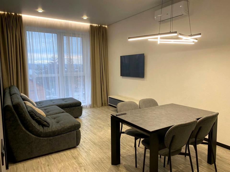 Пропонується 2к квартира в ЖК Лагуна. Кухня гостина з зоною відпочинку та розкладним диваном. Спальня з великим ліжком. Гардеробна окрема кімната. Пральна та сушильні машини, вся необхідна техніка в наявності.