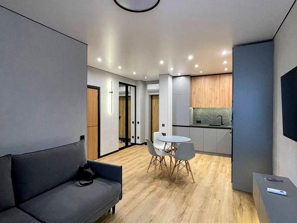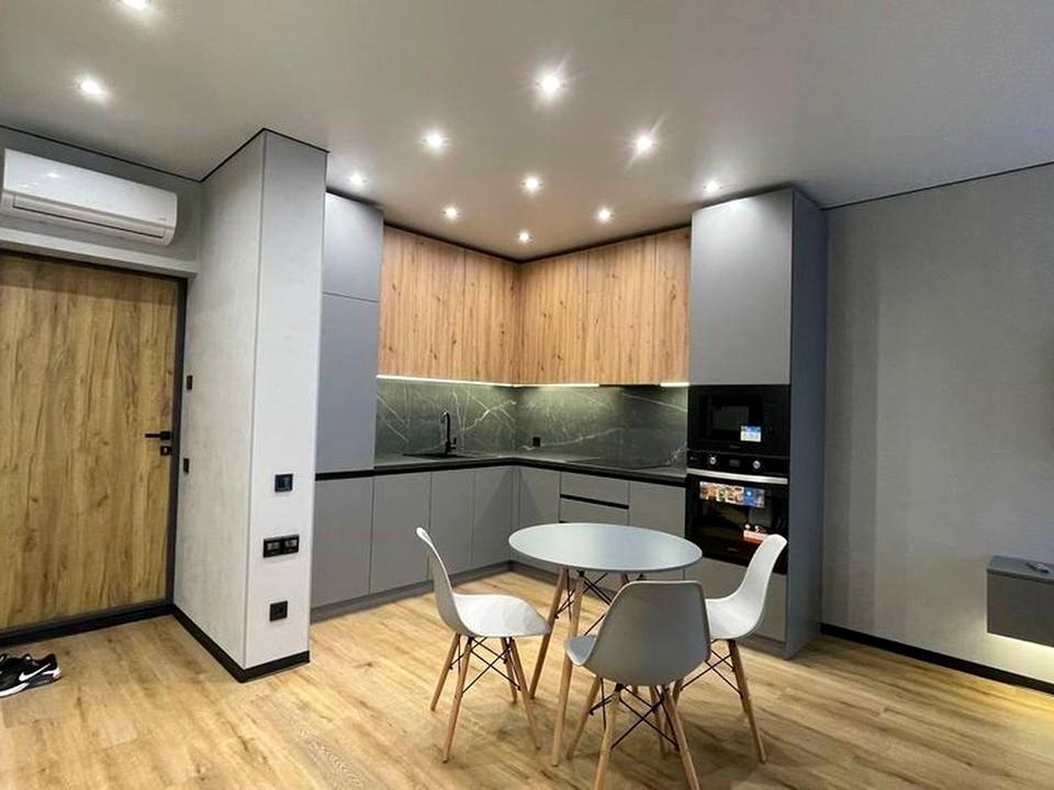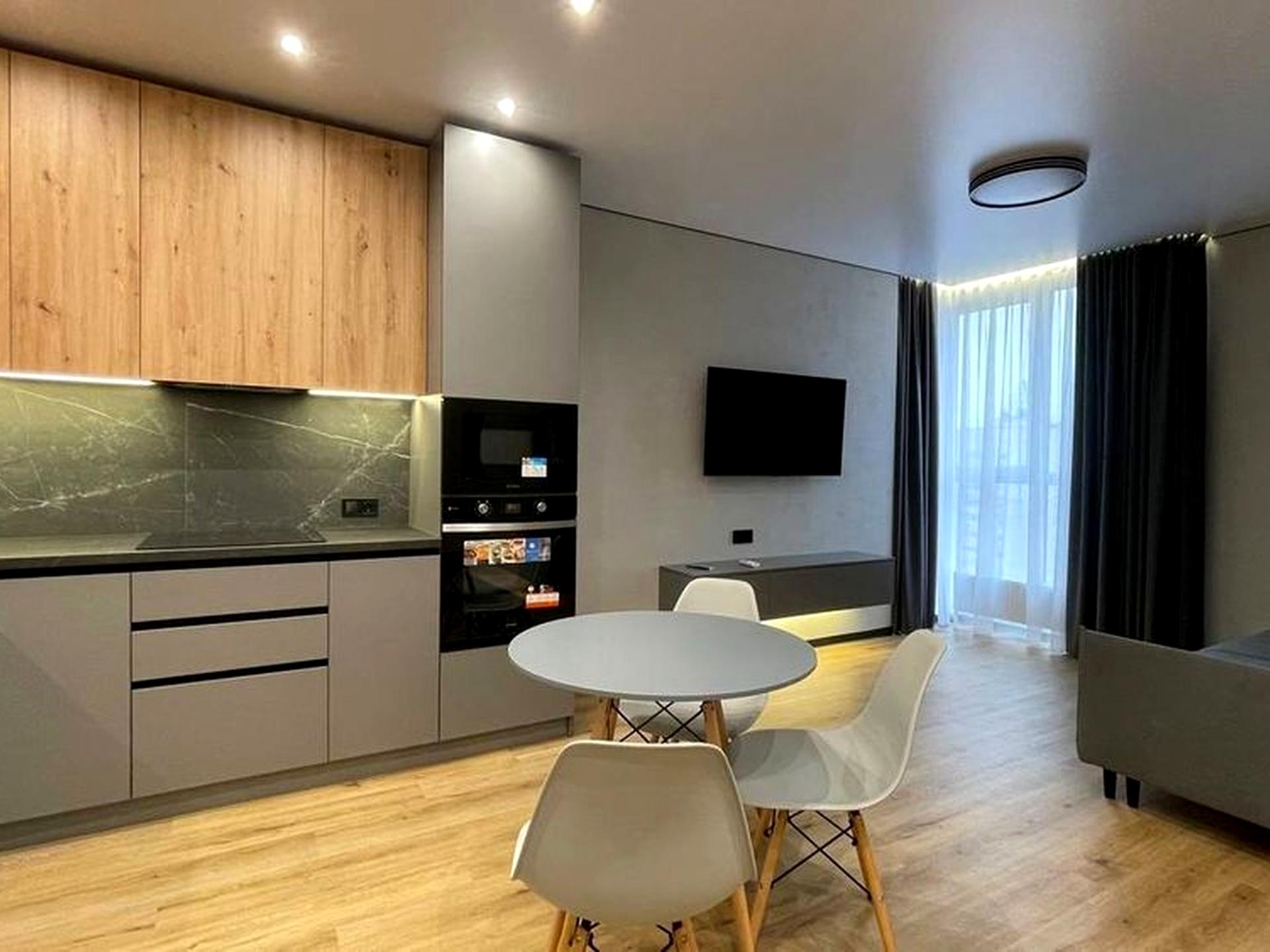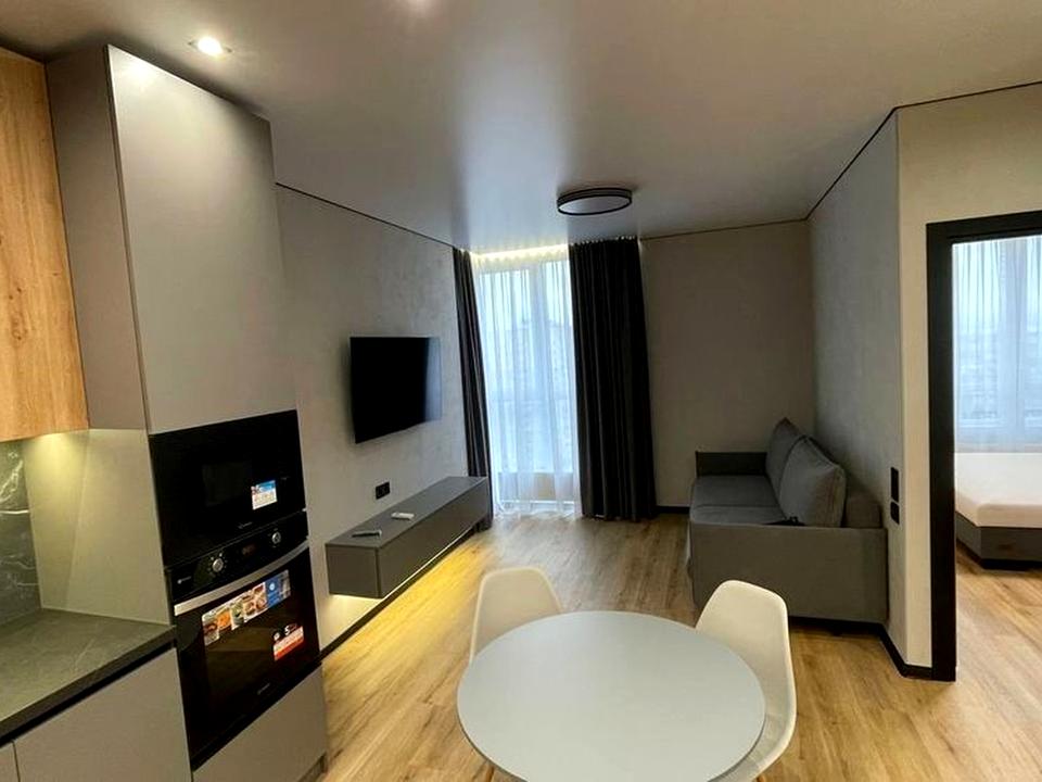 В квартире 2 комнаты, высота потолков 3 метра, Тип будинку - Спец. проект. Газа нет, кухонная плита электрическая. В квартире есть Телевизор, Кондиционер, Стиральная машина, Ванна, Холодильник, Микроволновка. Дом построен в 2022 году. Общее состояние квартиры - С ремонтом. Горячая вода - электрический бойлер. Количество санузлов: 1. Интернет оптоволоконный. Работает без света - вода, отопление, интернет, лифт. Тип кухни - кухня-студия. Количество спален: 1. Есть подземный паркинг, доступный как укрытие. Инфраструктура территории: детская площадка, спортивная площадка, двор без авто. Комиссия за услуги 75 %