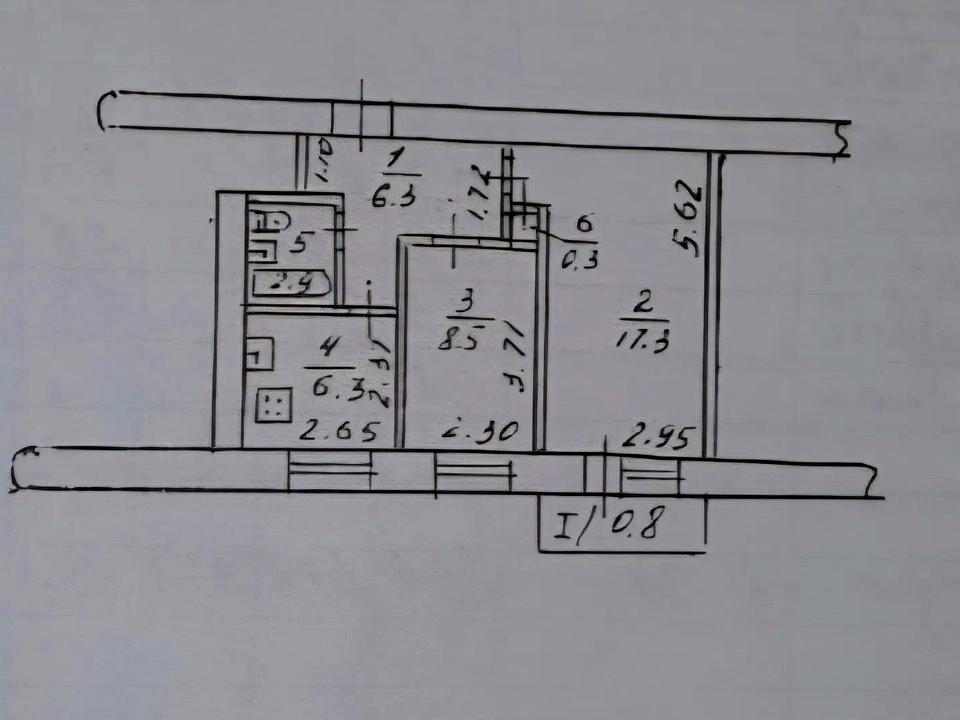 Загальна площа - 43 кв.м:, кухня - 6 кв м., 2 окремі кімнати, санвузол з ванною, балкон.