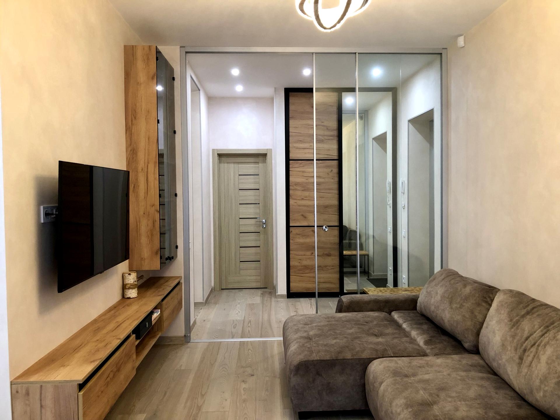 Виконано ремонт за дизайнерським проектом, у спокійних, світлих тонах.