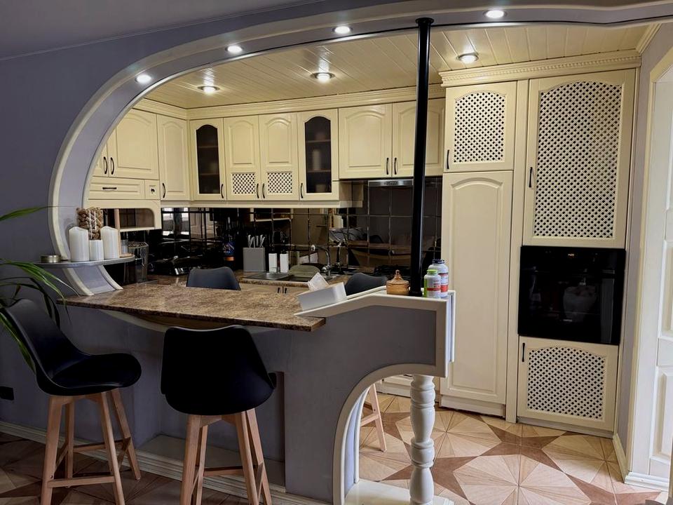Стильна квартира, з продуманим плануванням — дві окремі кімнати та велика кухня-студія з якісною кухнею з натурального дерева.