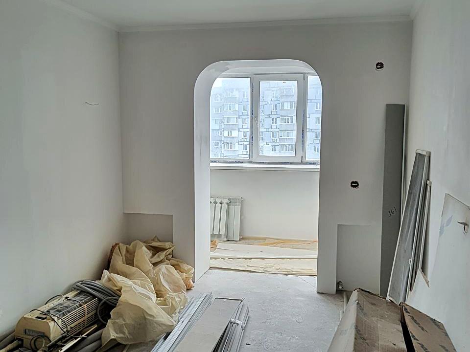 выполнен большой объём черновых работ: автономное отопление, полностью заменена электропроводка, стены выровнены, выполнена стяжка полов. Частично на полу плитка,санузел подготовлен полностью основные работы выполнены.
