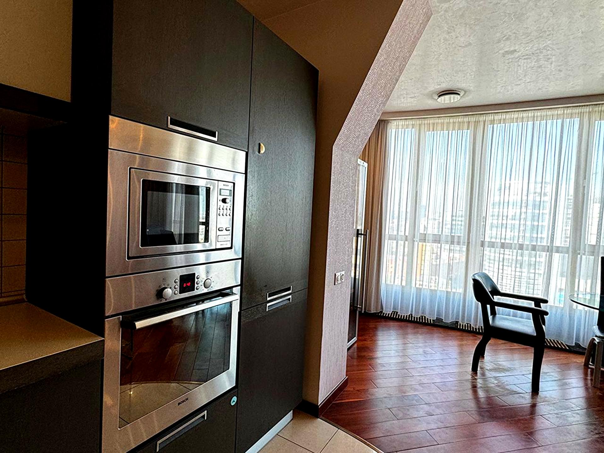 В квартире 4 комнаты, высота потолков 2.9 метра, Технологія будівництва - Цегляна. Вид из окон на реку, на город. Планировка комнат Смежно-раздельная. Есть горячая вода. Отопление автономное. В квартире 2 совместных санузла, туалет/ванная/душ. Есть 3 балкона. В квартире есть Кабельное ТВ, Спутниковое ТВ, Подогрев полов, Кондиционер, Стиральная машина, Душевая кабина, Джакузи, Холодильник, Микроволновка, Посудомойная машина, Сигнализация. Дом построен в 2010 году. Общее состояние квартиры - С ремонтом. Рядом есть школа, детсад, развлекательные заведения, остановки, супермаркет, парк, речка/озеро. Покрытие пола: паркет. Комиссия за услуги 5 %