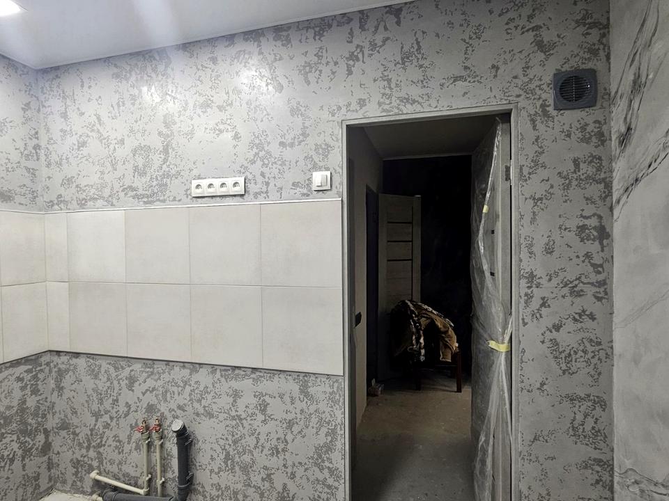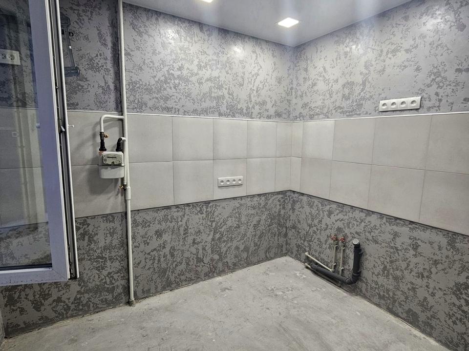 Новые окна с москитными сетками, кафель, на стенах веницианская штукатурка.