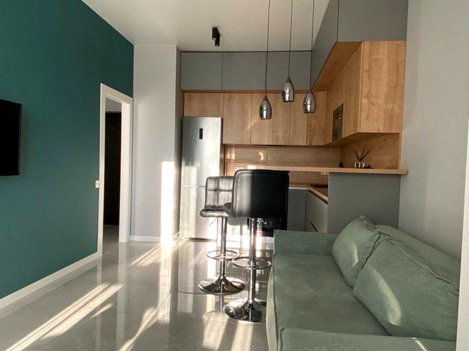В квартире 1 комната, высота потолков 3 метра, Технологія будівництва - Цегляна, Тип будинку - Спец. проект. Есть газ, кухонная плита электрическая. Балкона нет. В квартире есть Телевизор, Подогрев полов, Кондиционер, Стиральная машина, Душевая кабина, Холодильник, Микроволновка. Дом построен в 2022 году. Общее состояние квартиры - С ремонтом. Горячая вода - электрический бойлер. Количество санузлов: 1. Интернет проводной (кабельный). Работает без света - газ. Тип кухни - кухня-студия. Количество спален: 1. Комиссия за услуги 5 %
