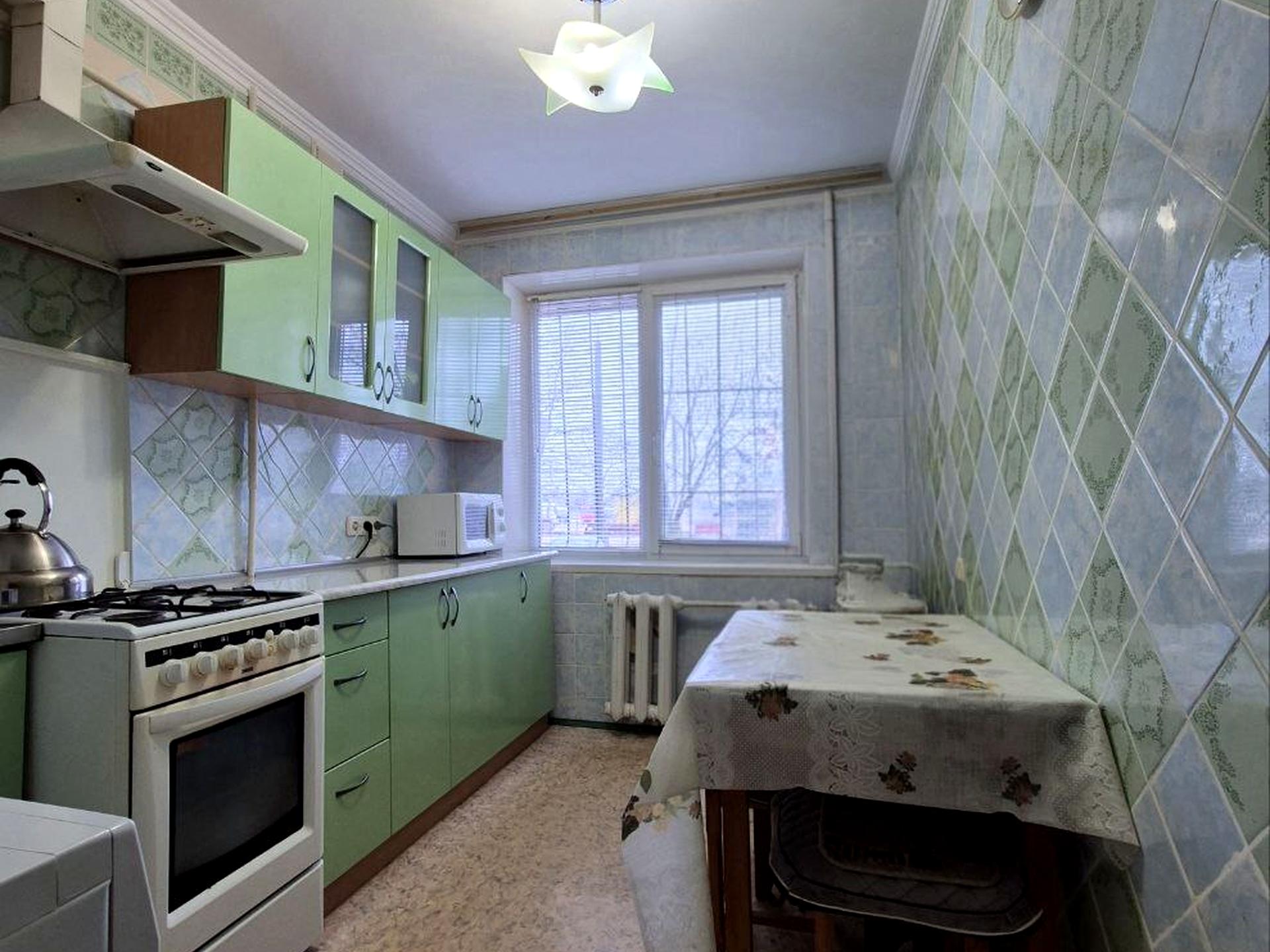 Квартира двостороння, розташована на зручному 1му поверсі 10ти поверхового будинку, загальна площа 60 м². Одна кімната прохідна та дві ізольовані, велика лоджія із меблями.