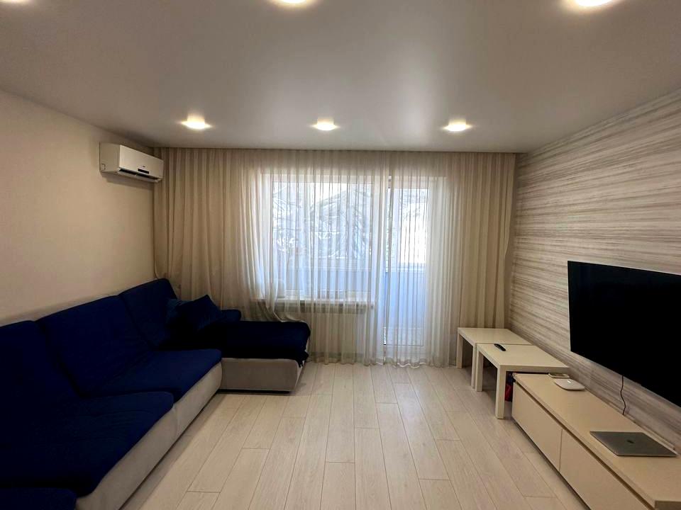 В квартире 3 комнаты, высота потолков 2.5 метра, Технологія будівництва - Блочна. Есть балкон. В квартире есть Телевизор, Кондиционер, Стиральная машина, Ванна, Холодильник. Общее состояние квартиры - С ремонтом. Безбарьерность: дверные проемы в доме шириной более 0.9 м. Горячая вода - электрический бойлер. Количество санузлов: 1. Работает без света - интернет. Тип кухни - отдельная кухня. Количество спален: 2. Комиссия за услуги 5 %