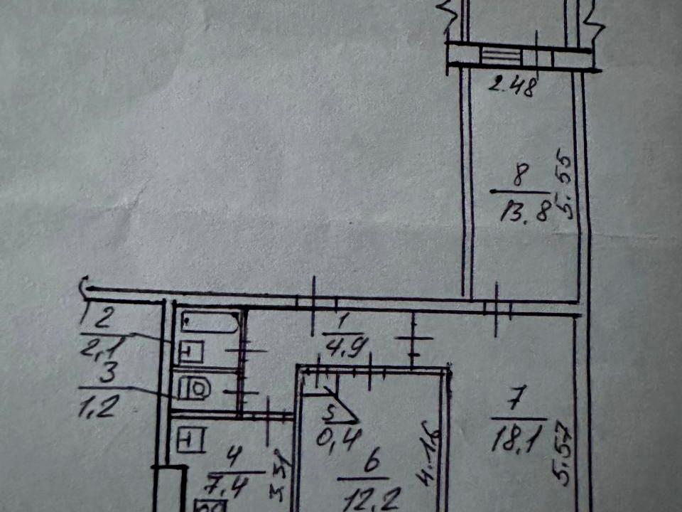 В квартире 3 комнаты. Есть балкон. Общее состояние квартиры - Без ремонта. Количество санузлов: 1. Тип кухни - отдельная кухня. Количество спален: 2. Комиссия за услуги 5 %