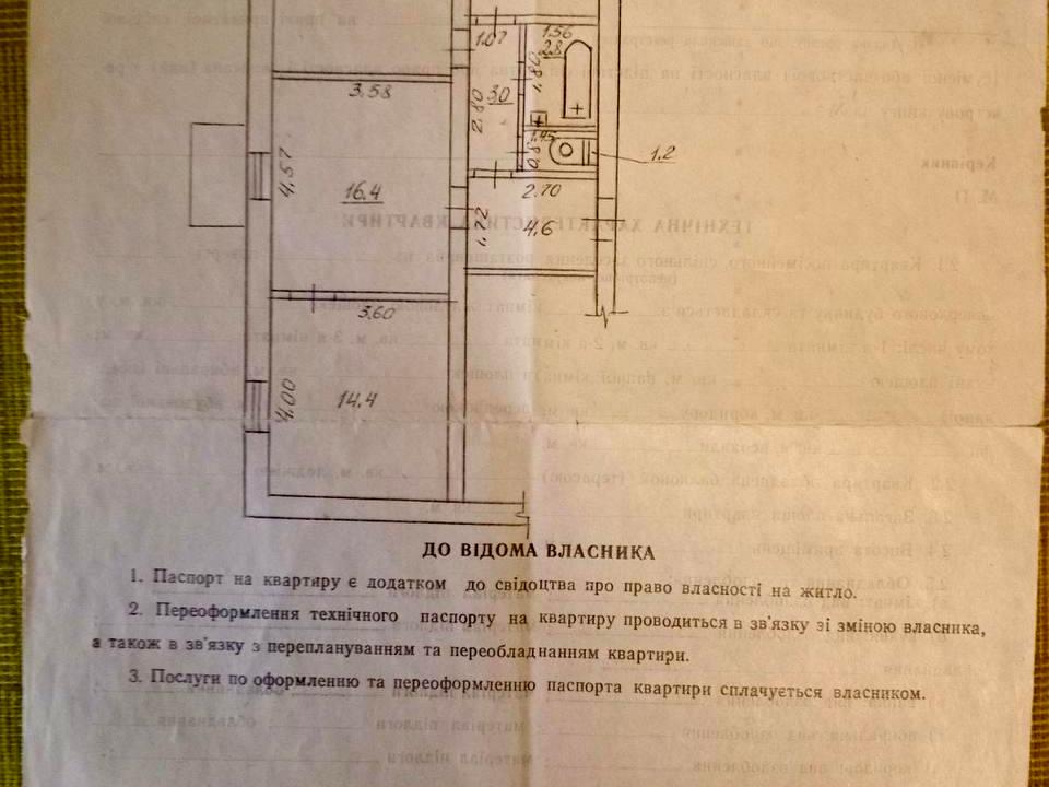 Загальна площа - 65 кв.м.: кухня -7,3 кв.м, житлова- 45,1 кв.м- 1+2 окремі кімнати, засклений балкон, роздільний санвузол 2,8кв.м./1,2кв.м., передпокій4,6 кв.м., коридор 3 кв.м.