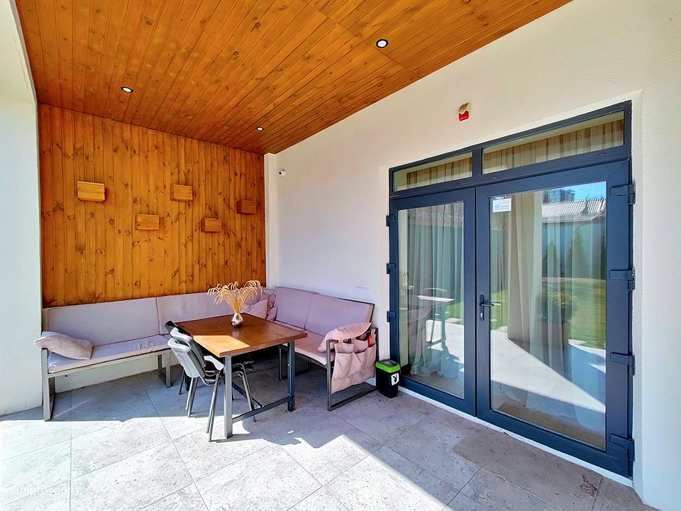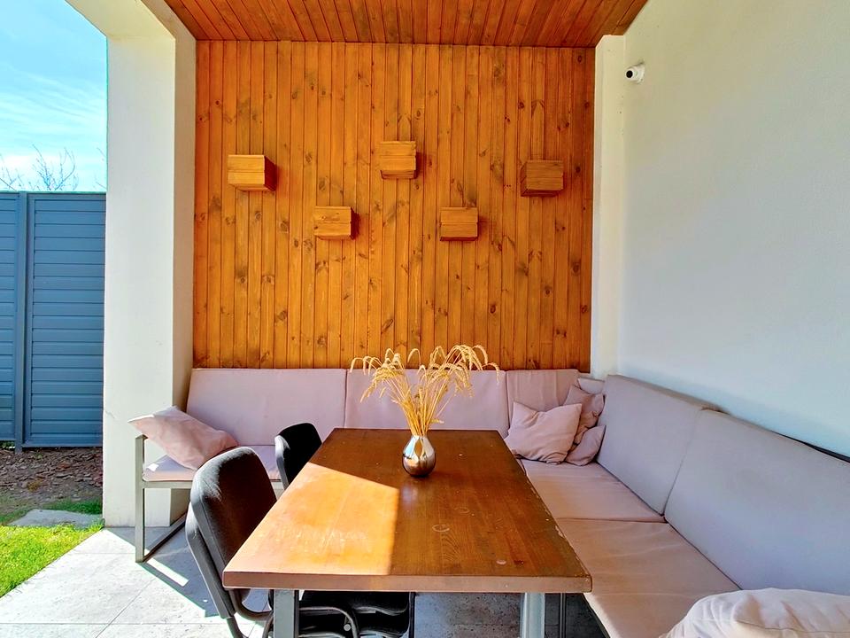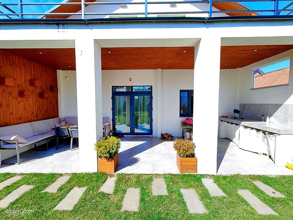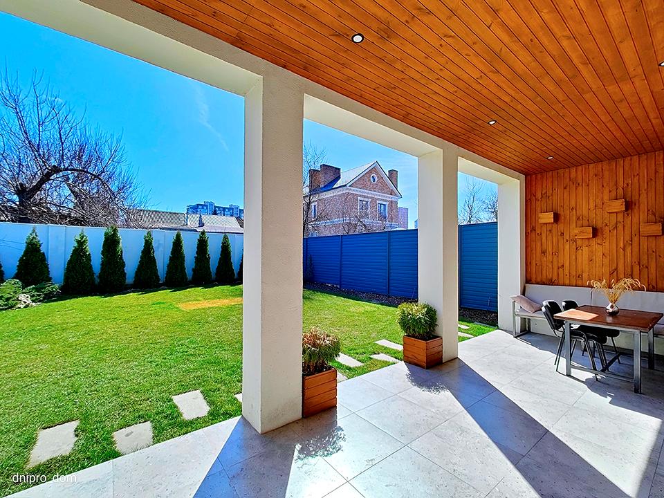 Внутренний двор с верандой и зоной барбекю.