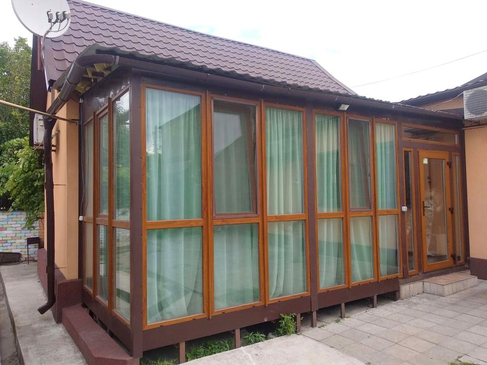 +засклена веранда для відпочинку
