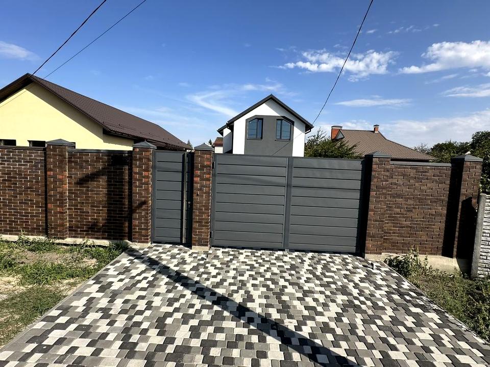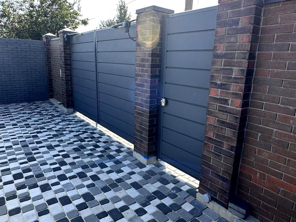 Во дворе плитка , автоматические ворота