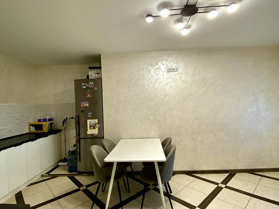 На кухні – індукційна плита, є можливість встановити газову поверхню для приготування їжі, духова шафа, холодильник, є місце для посудомийної машини.