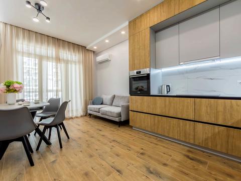Квартира повністю мебльована та укомплектована всією необхідною технікою для вашого щоденного комфорту. Ідеальний мікроклімат забезпечують три кондиціонери, встановлені в кожній житловій зоні. Кухо...