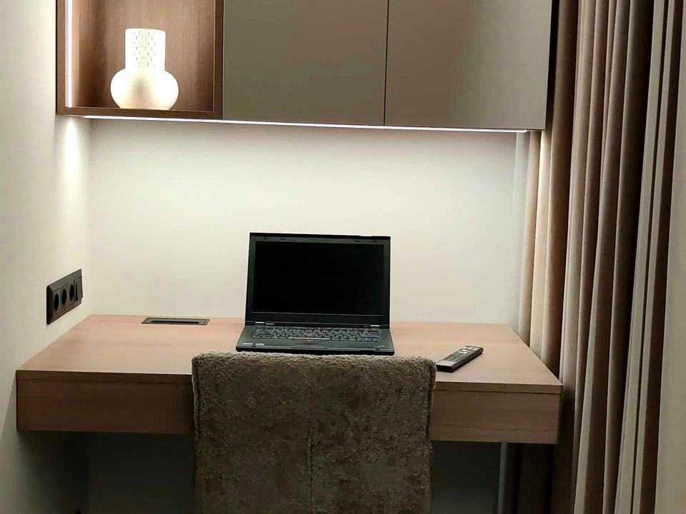 - Спальня з двоспальним ліжком, великою шафою-гардеробною, письмовим столом (робоче місце), кондиціонер, інтер’єрна підсвітка