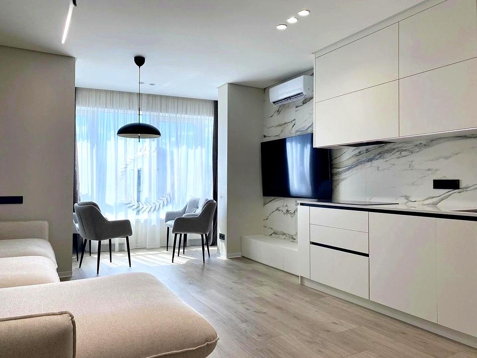 Оренда сучасної квартири з новим ремонтом по вул. Антоновича 109. ЖК "Володимирський". Перша здача! Новий ремонт, студія + дві спальні кімнати, два сан.вузли, шафи-купе для одягу, вся необхідна побутова техніка.