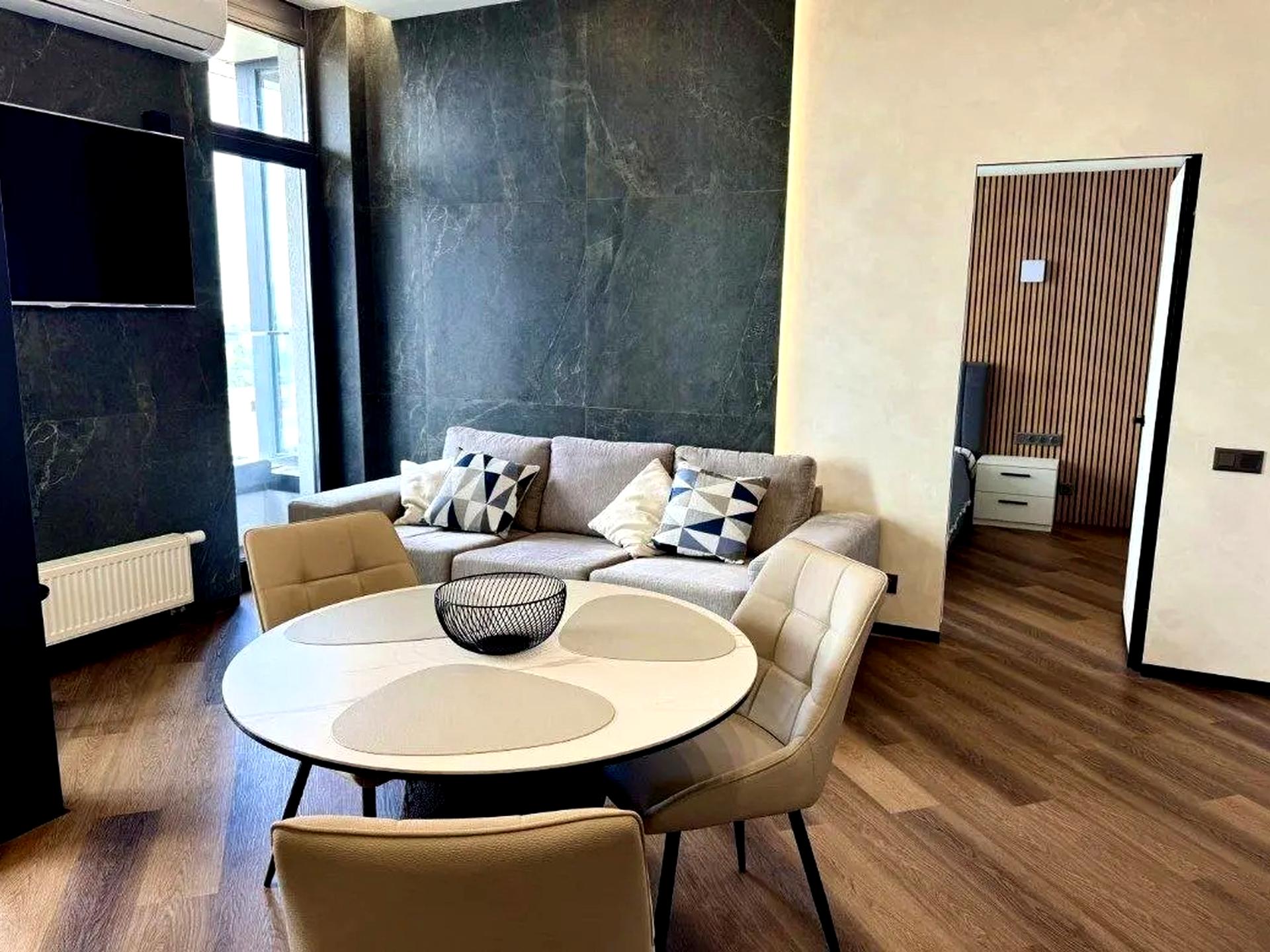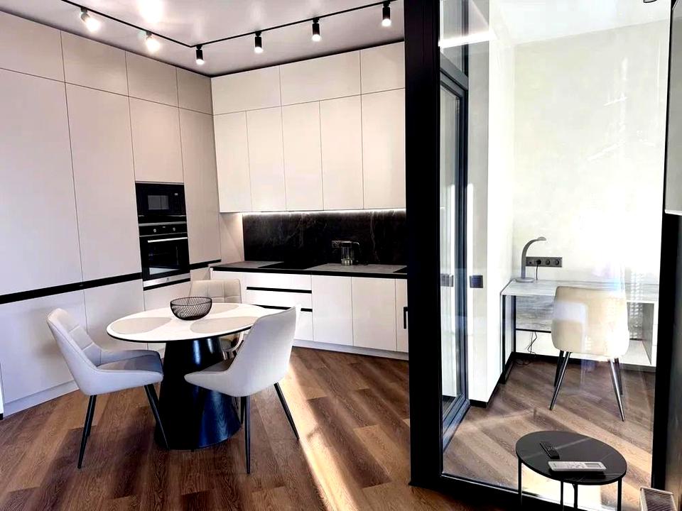 Квартира виконана за дизайн-проектом із якісних матеріалів— тут комфорт відчувається в кожній деталі від планування, освітлення до зберігання речей.