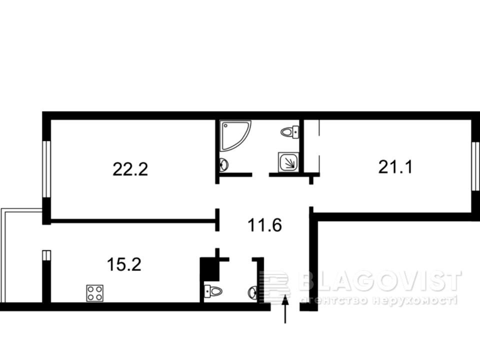 В квартире 2 комнаты. Планировка комнат Раздельная. Общее состояние квартиры - Евроремонт. Без комиссии