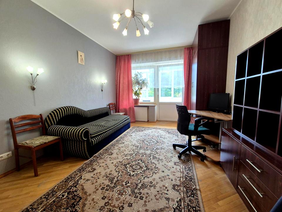 Просторий засклений балкон, виходить у тихий двір, будинок віддалений від основної дороги.