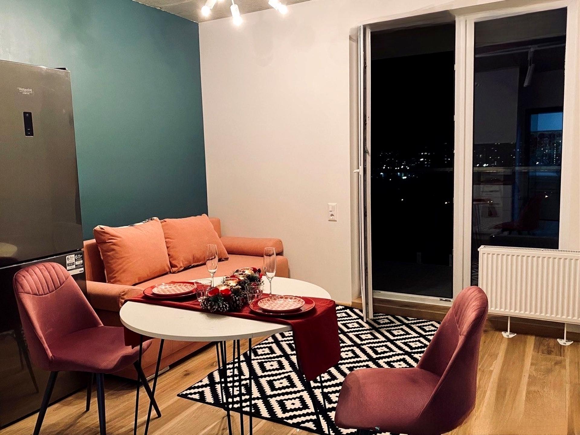 З кухні-студії є вихід на великий відкритий балкон, на якому можна приємно проводити романтичні вечори або насолоджуватись кавою, але враховуючи реалії сьогодення також в комплексі є укриття.