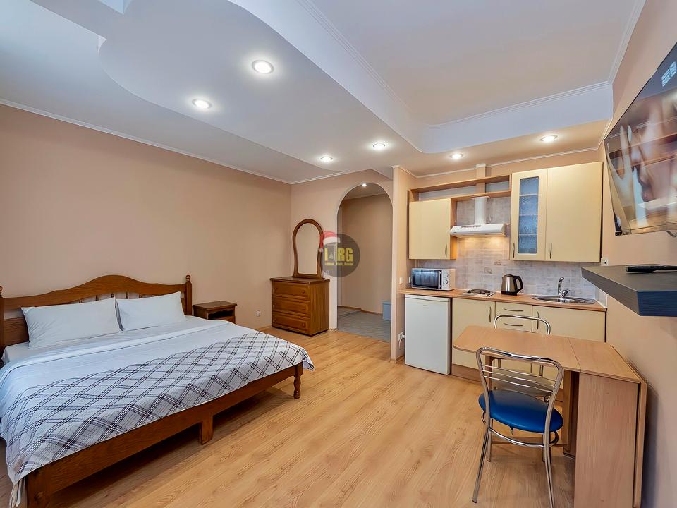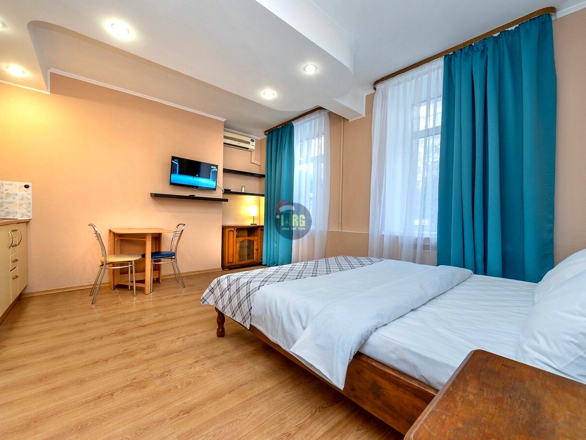 Дом - Сталинка, в квартире 1 комната. Вид из окон во двор. Квартира стандартная, планировка комнат Студия. Газа нет, кухонная плита электрическая. Горячая вода - централизованная. Отопление центральное. Совместный санузел, туалет/душ. Есть сантехника. Подогрева полов нет. Балкона нет. Окна металлопластиковые. В квартире есть Телевизор, DVD проигрыватель, Кабельное ТВ, Интернет, Утюг, Фен, Шкаф, Холодильник, Кровать, Стиральная машина, Микроволновка, Посуда, Кондиционер, Сигнализация, Спутниковое ТВ, Счетчики, Душевая кабина. Дом построен в 1954 году. Общее состояние квартиры - Евроремонт. Охрана, Консьерж, автопарковка. Рядом есть парк, речка/озеро, супермаркет, развлекательные заведения, школа, детсад, лес, остановки. Торг уместен, Срочно, Аренда почасово, Предоставление документов. Интернет проводной (кабельный). Комиссия за услуги 50 %