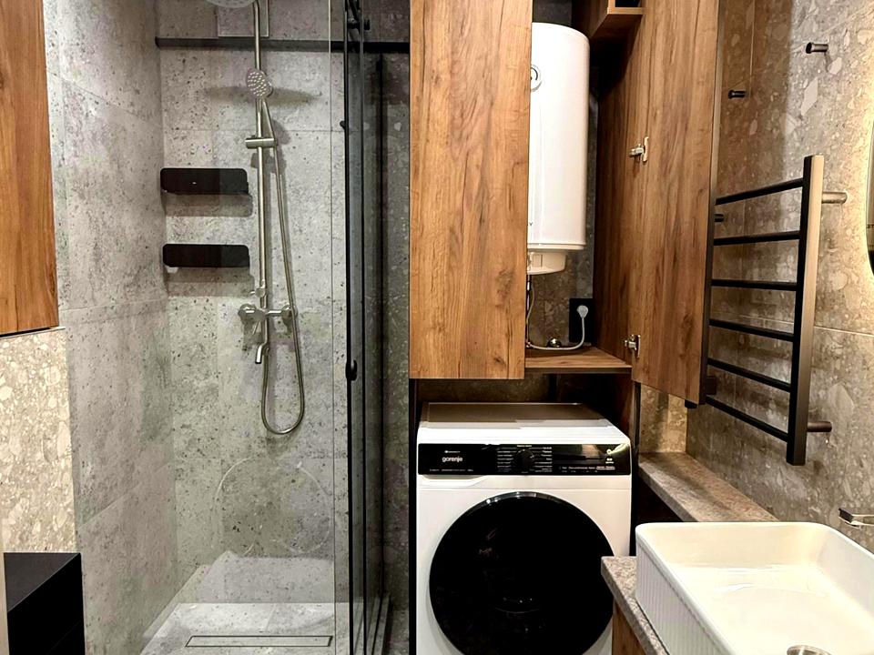 Дом - Украинская панель, в квартире 2 комнаты. Вид из окон во двор. Квартира стандартная, планировка комнат Раздельная. Газа нет, кухонная плита электрическая. Горячая вода - электрический бойлер. Отопление автономное. Совместный санузел, туалет/ванна. Есть сантехника. Есть подогрев полов. Балкона нет. Окна металлопластиковые. В квартире есть Телевизор, Кабельное ТВ, Утюг, Фен, Шкаф, Холодильник, Кровать, Стиральная машина, Микроволновка, Посуда, Кондиционер, Сигнализация, Посудомоечная машина. Дом построен в 2021 году. Общее состояние квартиры - Дизайнерский ремонт. Автопарковка, Охрана, Консьерж. Рядом есть школа, детсад, остановки, развлекательные заведения, супермаркет, парк, речка/озеро. Предоставление документов. Интернет оптоволоконный. Работает без света - вода, отопление, интернет. Комиссия за услуги 50 %