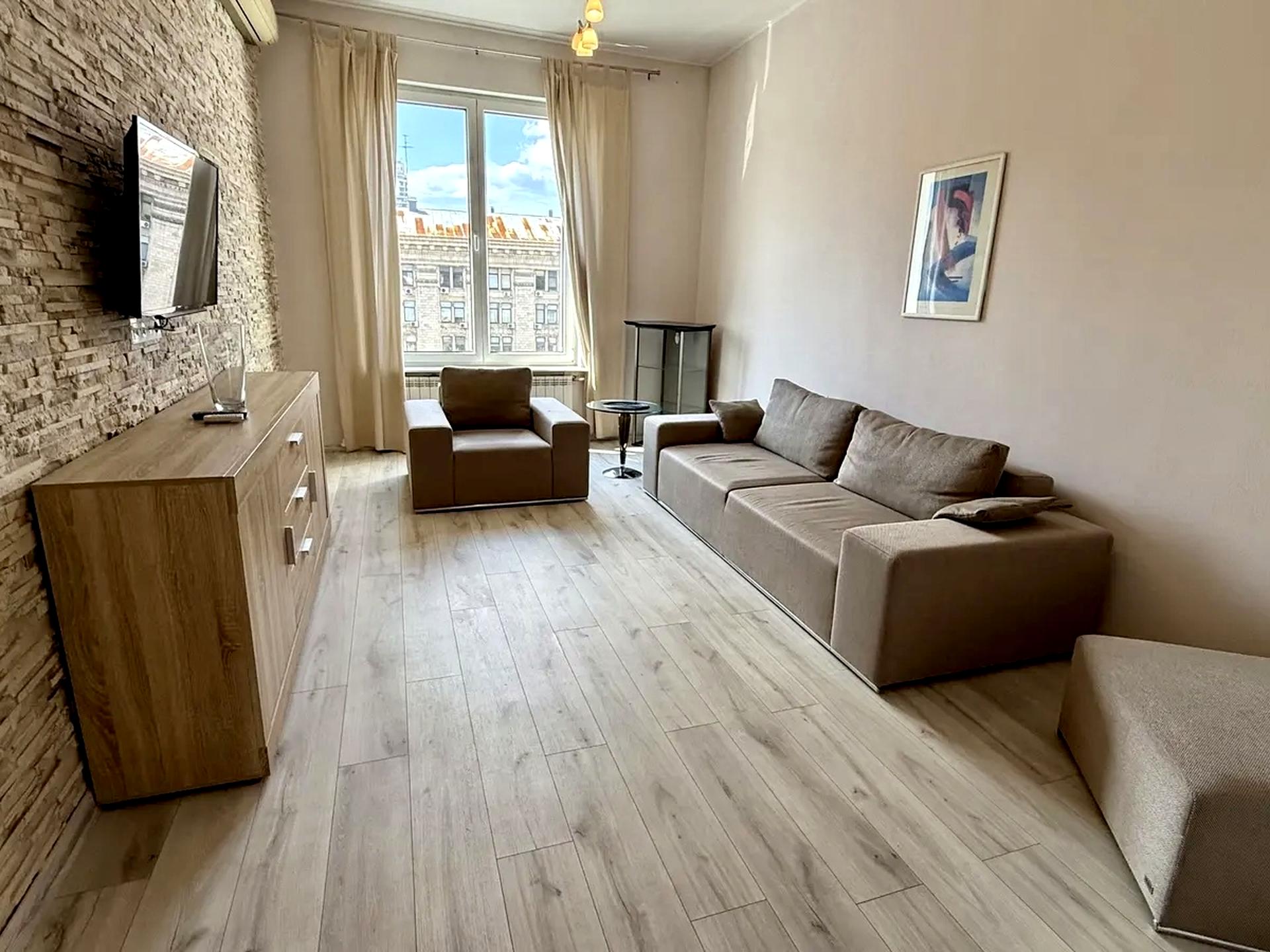 Дом - Сталинка, в квартире 3 комнаты. Вид из окон во двор, на город. Планировка комнат Раздельная. Горячая вода - электрический бойлер. Отопление центральное. Совместный санузел, туалет/ванна. Есть 2 балкона. Окна металлопластиковые. В квартире есть Телевизор, Кабельное ТВ, Шкаф, Холодильник, Кровать, Стиральная машина, Микроволновка, Кондиционер, Счетчики. Общее состояние квартиры - Дизайнерский ремонт. Охрана, Консьерж. Рядом есть супермаркет, развлекательные заведения, остановки. Срочно. Работает без света - вода, отопление, интернет, лифт. Комиссия за услуги 50 %