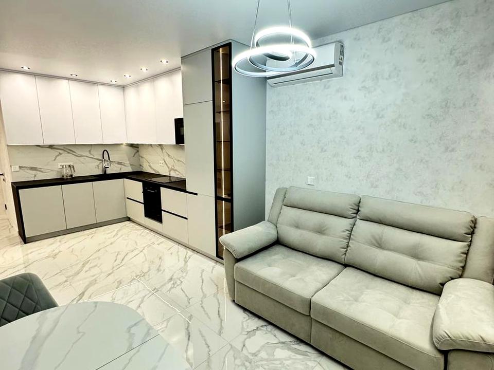 Дом - Бетонно монолитный, в квартире 1 комната. Планировка комнат Раздельная. В квартире есть Телевизор, Шкаф, Холодильник, Кровать, Стиральная машина, Микроволновка, Кондиционер, Счетчики, Душевая кабина, Посудомоечная машина. Общее состояние квартиры - Евроремонт. Предоставление документов. Работает без света - вода, отопление, интернет, лифт. Комиссия за услуги 50 %
