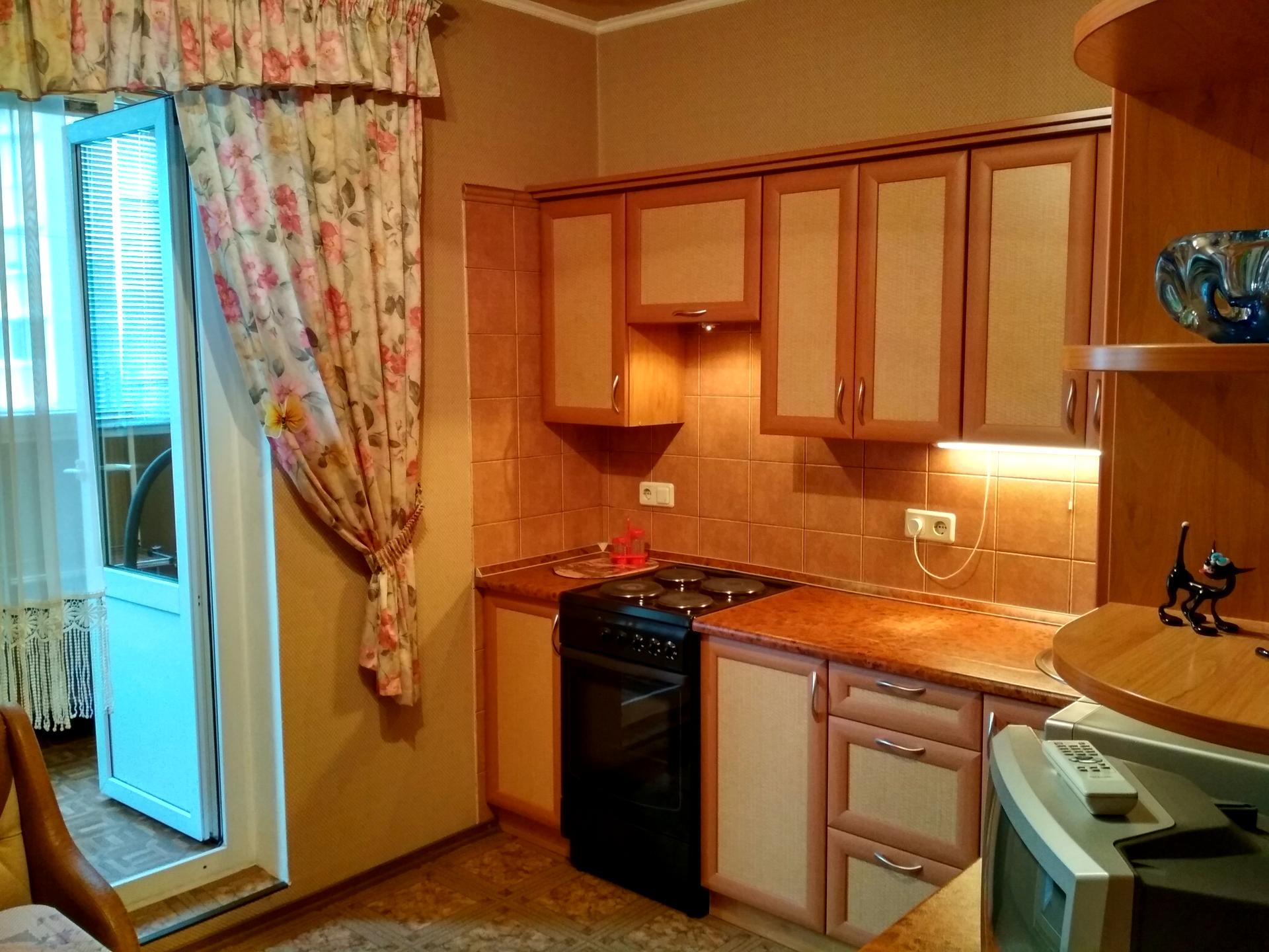 Дом - Бетонно монолитный, в квартире 1 комната. Вид из окон во двор. Квартира стандартная, планировка комнат Раздельная. Газа нет, кухонная плита электрическая. Горячая вода - электрический бойлер. Отопление центральное. Совместный санузел, туалет/ванна. Есть сантехника. Подогрева полов нет. Есть балкон. Окна металлопластиковые. В квартире есть Телевизор, Кабельное ТВ, Утюг, Шкаф, Холодильник, Кровать, Стиральная машина, Микроволновка, Посуда, Счетчики. Дом построен в 2001 году. Общее состояние квартиры - Хорошее состояние. Рядом есть школа, остановки, развлекательные заведения, супермаркет, парк, речка/озеро, лес. Интернет проводной (кабельный). Работает без света - вода, отопление, интернет. Комиссия за услуги 50 %