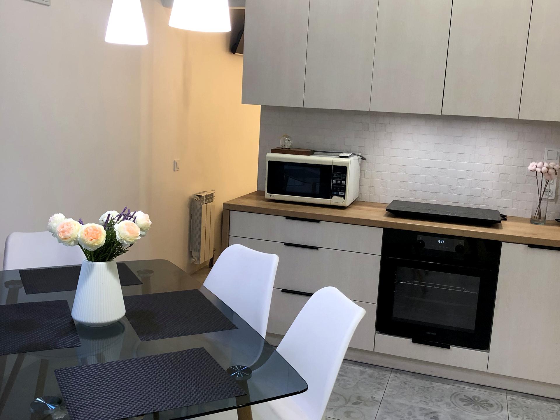 Сучасний якісний ремонт. Повністю укомплектована меблями і технікою для комфортного проживання. Планування: простора кухня - вітальня, спальня з двоспальним ліжком, дитяча кімната з двухповерховою якісною кроватю і двома робочими зонами для навчання.