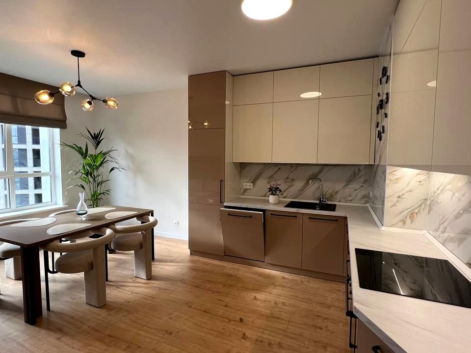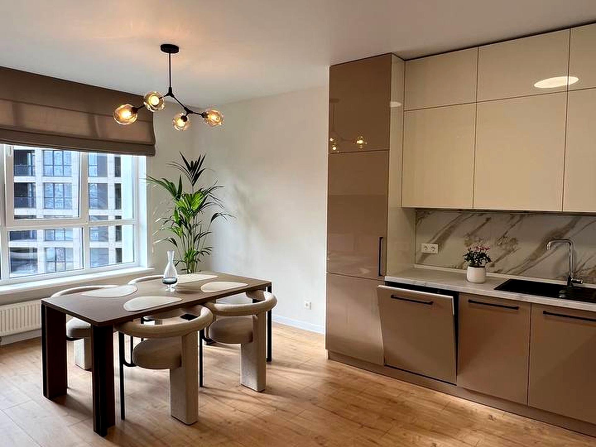 Квартира розташована на 8 поверсі комплексу, відрізняється продуманим плануванням, преміальними матеріалами та стильним інтер’єром.