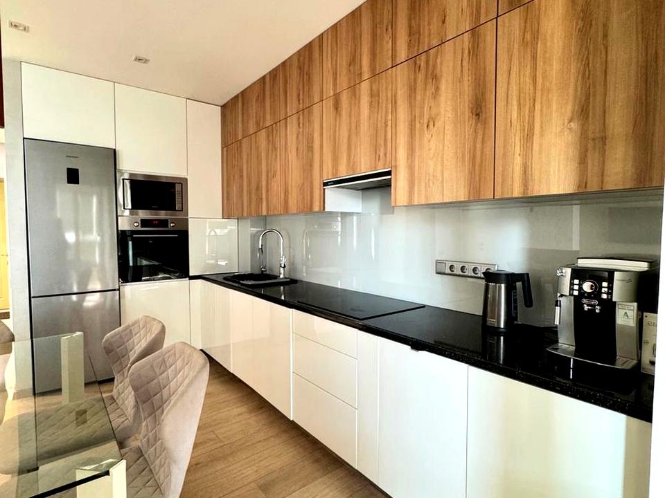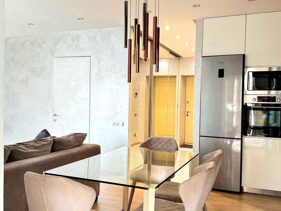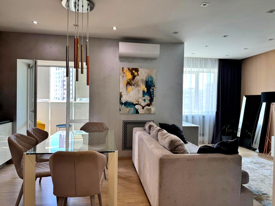 В квартирі виконаний дизайнерський дорогий ремонт для себе, вбудована кухня (посудомийка, фільтр води, духова шафа, витяжка, мікрохвильовка). Мармурові підвіконними, мурмурова інсталяція з діючим каміном, підігрів підлоги на балконі, коридорі та у ванній кімнаті. Інверторний кондиціонер, праска, бойлер (все вбудоване). Дві великі шафи, двоспальне ліжко, двоспальний диван.