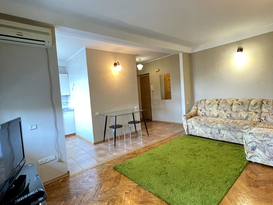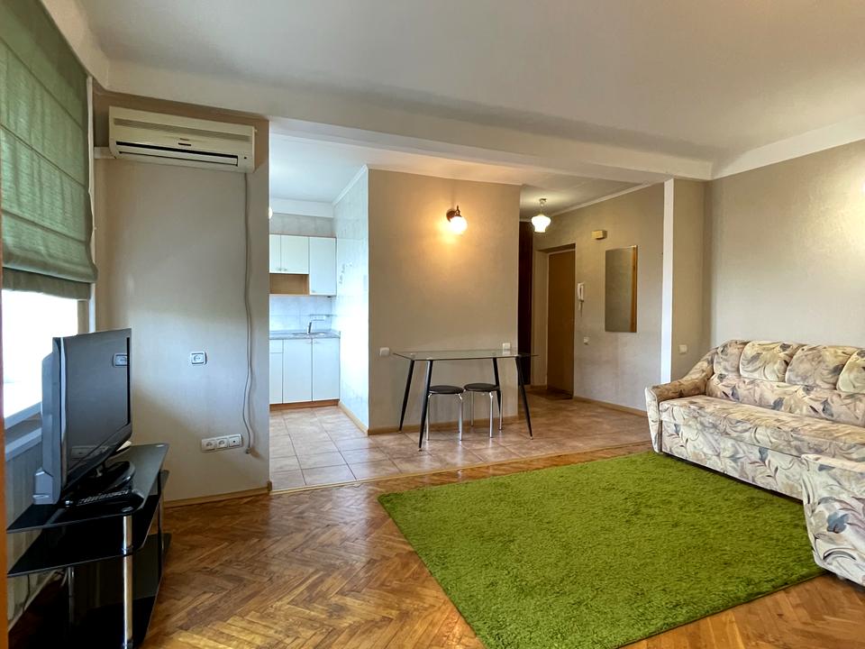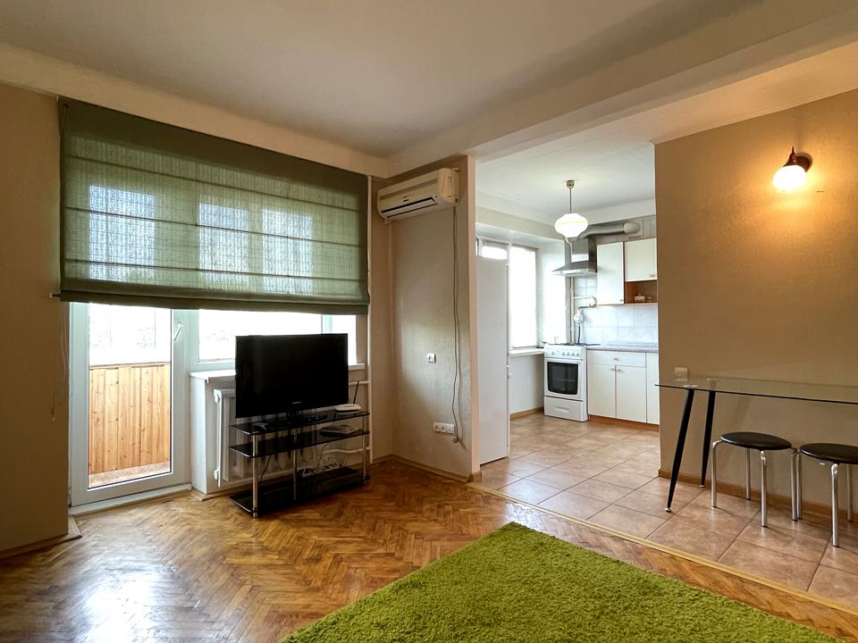 В квартире 2 комнаты. Вид из окон на город, на парк, на реку. Квартира перепланирована, планировка комнат Студия. Есть газ, кухонная плита газовая. Горячая вода - электрический бойлер. Отопление центральное. Совместный санузел, туалет/ванна. Есть сантехника. Есть балкон. Окна металлопластиковые. В квартире есть Телевизор, Кабельное ТВ, Утюг, Шкаф, Холодильник, Кровать, Стиральная машина, Микроволновка, Кондиционер, Счетчики. Общее состояние квартиры - Хорошее состояние. Рядом есть школа, остановки, развлекательные заведения, супермаркет, парк, речка/озеро. Интернет беспроводной. Работает без света - вода, газ, отопление, интернет. Комиссия за услуги 50 %