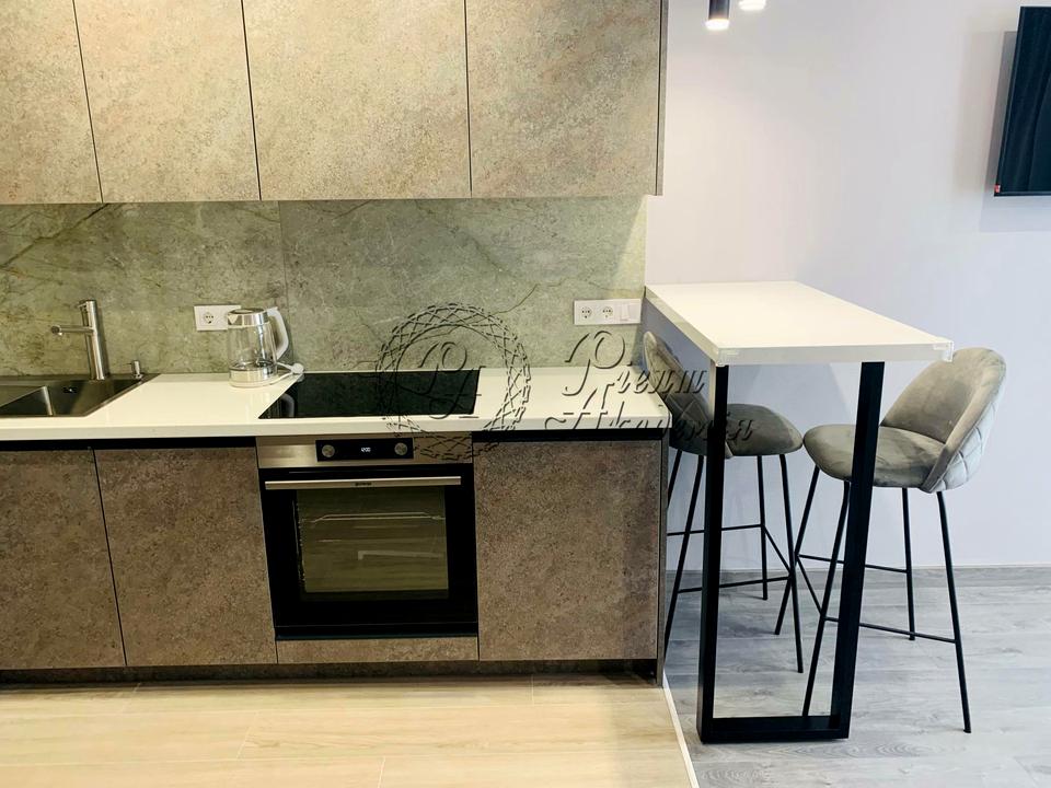 Пропонується в оренду квартира-студія в ЖК Orange City на Лисогірському провулку, 20, Голосіївський район. Сучасна квартира з якісним євроремонтом, повністю мебльована та з технікою. Площа 26,4 м2, розташована на 15 поверсі 27-поверхового будинку. В квартирі є все необхідне для комфортного проживання: вбудована кухня з технікою (варильна поверхня, духова шафа, витяжка, посудомийна машина, мікрохвильова піч, холодильник, електрочайник), великий, зручний розкладний диван, телевізор, кондиціонер. Сумісний санвузол (ванна, інсталяція з унітазом, бойлер, пральна машина з сушаркою). Відкритий балкон з гарним краєвидом. Опалення по лічильникам, система захисту від потопу. Два ліфти. Охорона, відеоспостереження. В будинку є укриття. На території працюють кав"ярні, магазини. Будинок розташований в зеленій зоні. Комісія 50%.