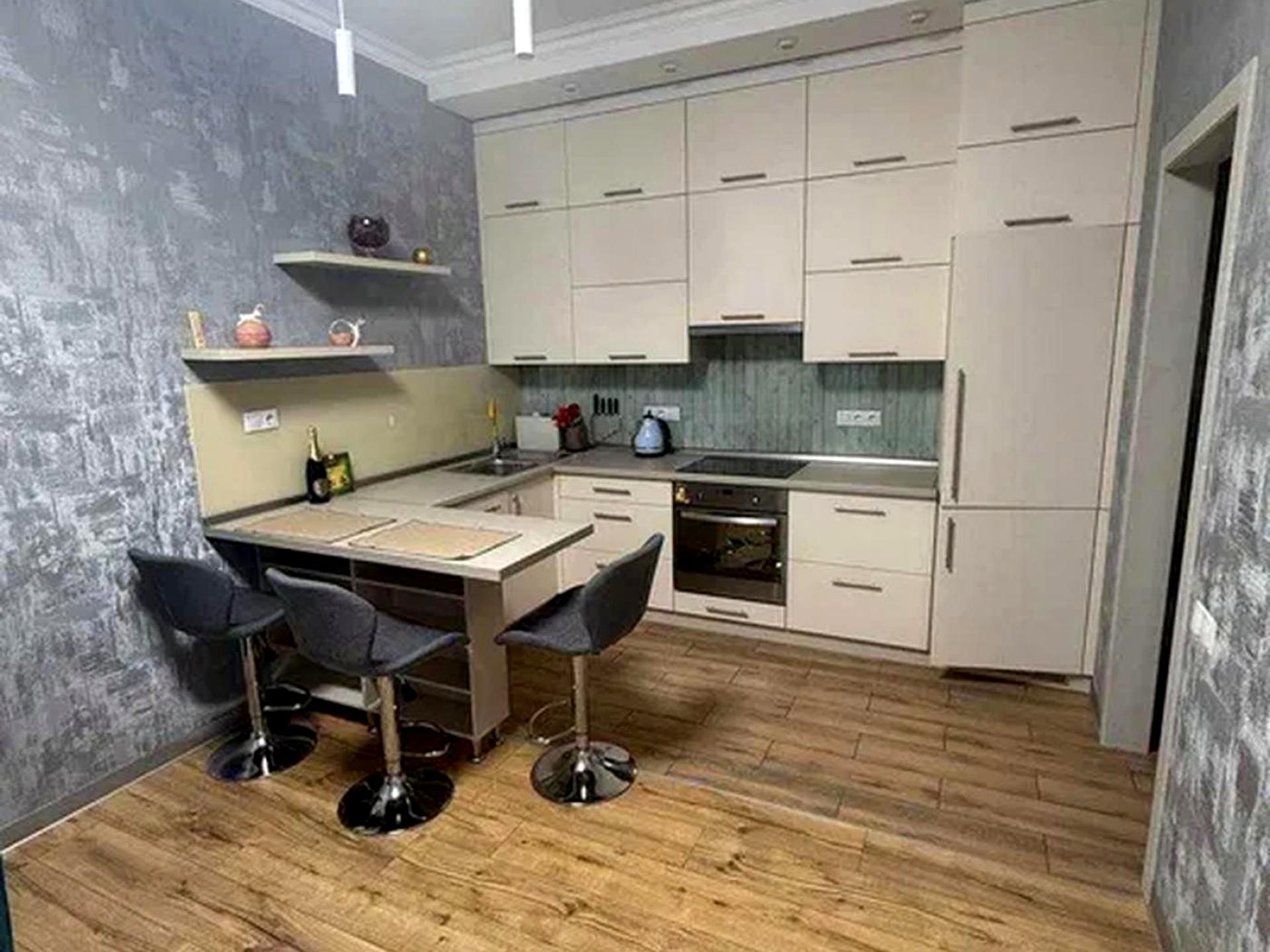 Квартира з дизайнерським ремонтом, обладнана меблями і всією необхідною технікою: Посудомийна машина, Сушильна машина, Електрочайник, Холодильник, Варильна панель, Праска, Мікрохвильова піч, Духова шафа, Плита, Пилосос, Пральна машина
