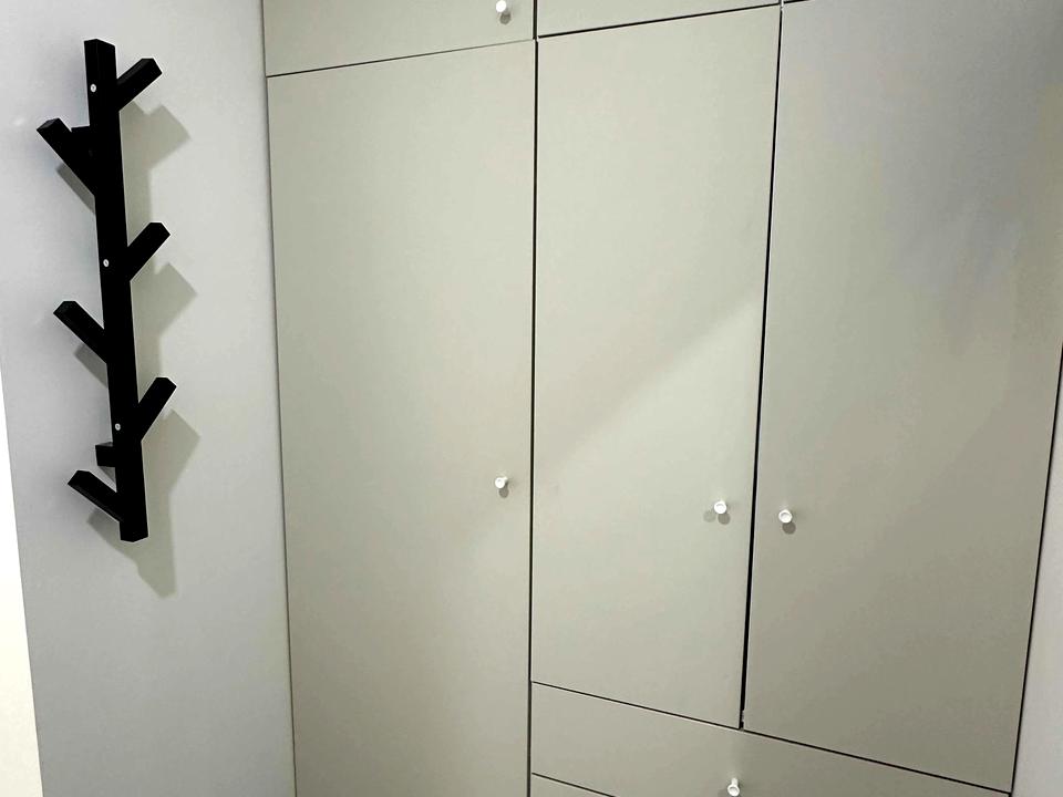 - багато місць зберігання: шафа при вході в квартиру, вбиральня в спальні, шафи та полички в санвузлі
