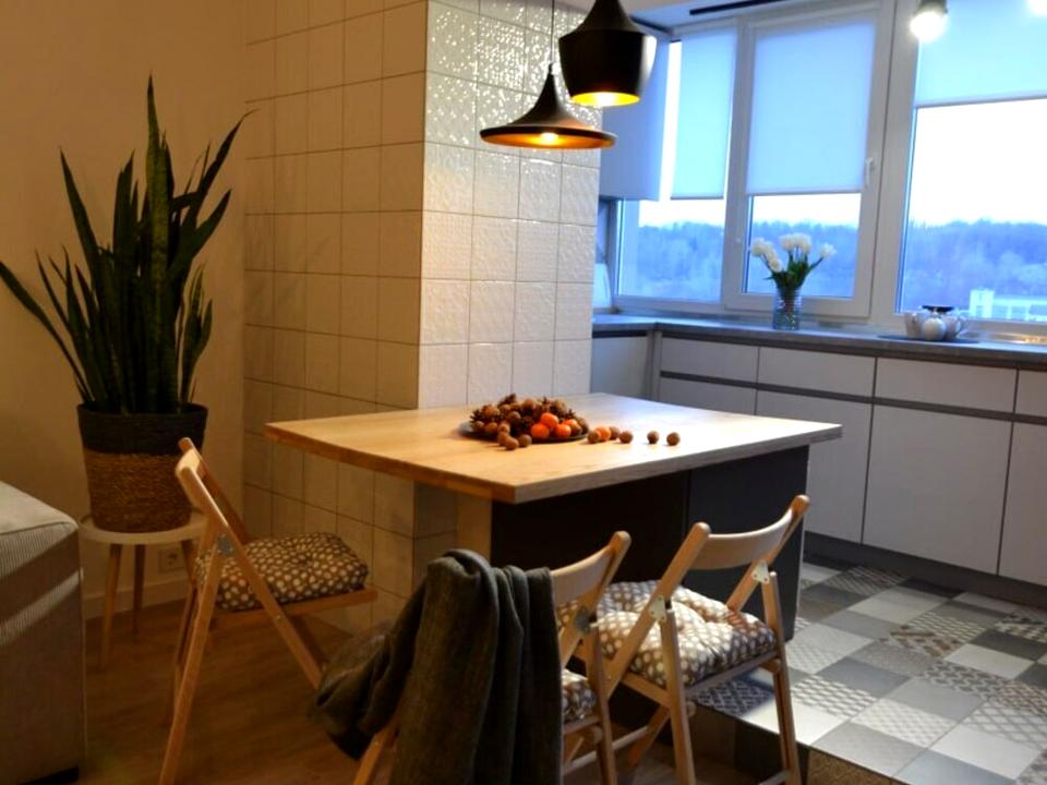 Квартира з душею та характером — кухня-студія з вітальнею і окрема спальня. Простір оформлений у творчому стилі: картини, авторські деталі, декоративні ліхтарі створюють унікальну атмосферу натхнення й затишку.