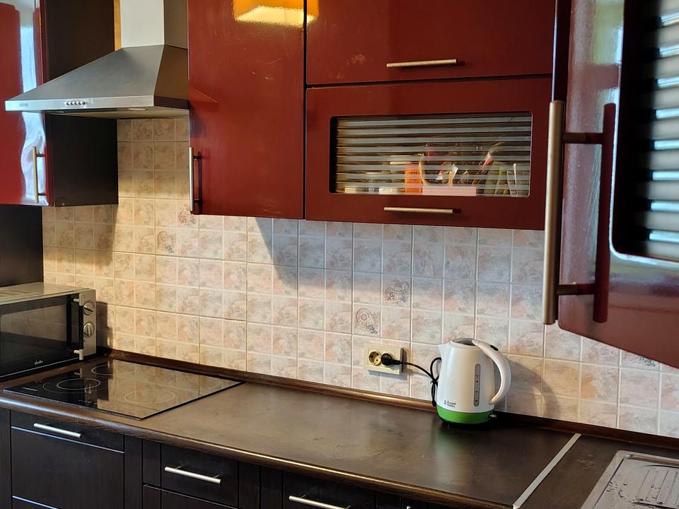 Кухня 12 м²: Повністю відбудована, стильна кухня, де готувати – одне задоволення. Вся необхідна побутова техніка (холодильник, варильна поверхня, духова шафа, пральна машина) вже чекає на тебе.