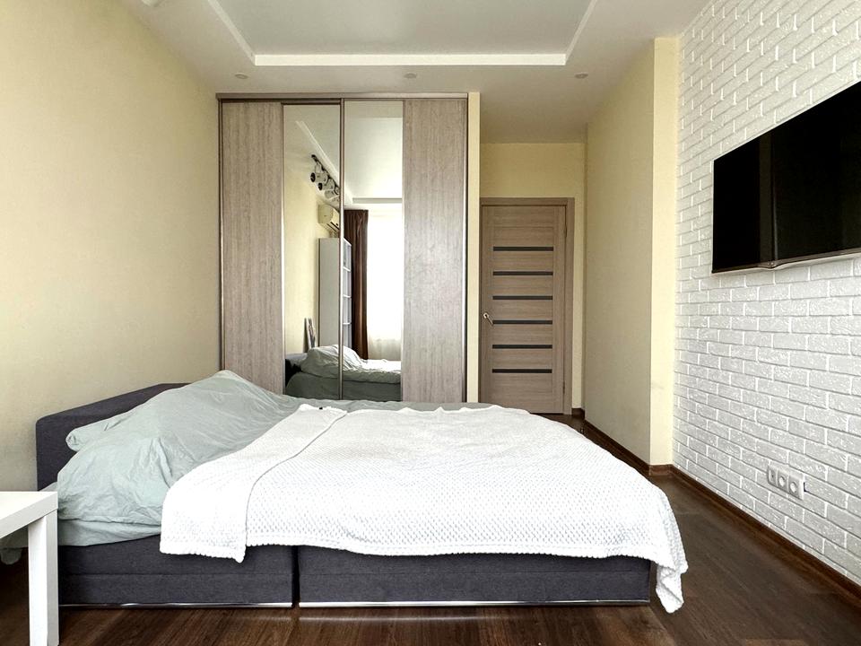 В квартире 1 комната, Технологія будівництва - Монолітно-каркасна. Вид из окон на реку, на парк. Квартира стандартная, планировка комнат Раздельная. Газа нет, кухонная плита электрическая. Есть горячая вода. Отопление центральное. Совместный санузел, туалет/ванна. Есть сантехника. Подогрева полов нет. Есть балкон. Окна металлопластиковые. В квартире есть Телевизор, Шкаф, Холодильник, Кровать, Стиральная машина, Кондиционер, Счетчики. Дом построен в 2014 году. Общее состояние квартиры - С ремонтом. Автопарковка, Консьерж. Рядом есть школа, детсад, развлекательные заведения, остановки, супермаркет, парк, речка/озеро, лес. Торг уместен. Интернет беспроводной. Без комиссии